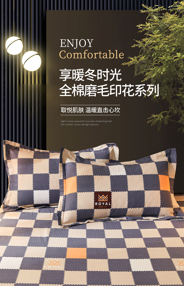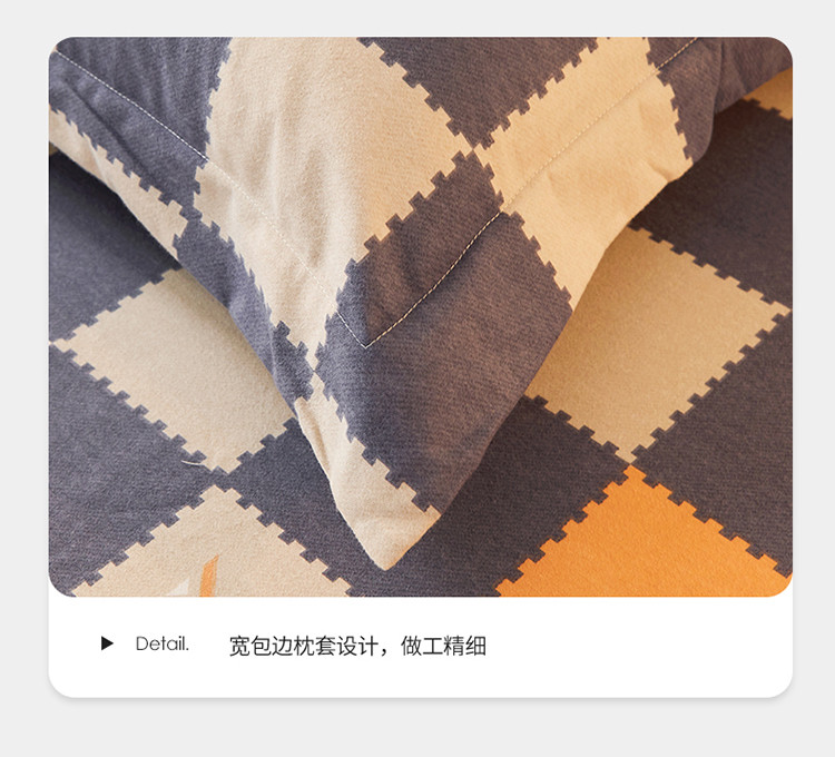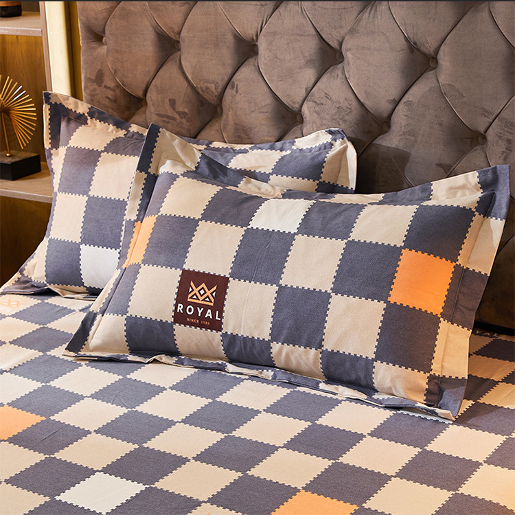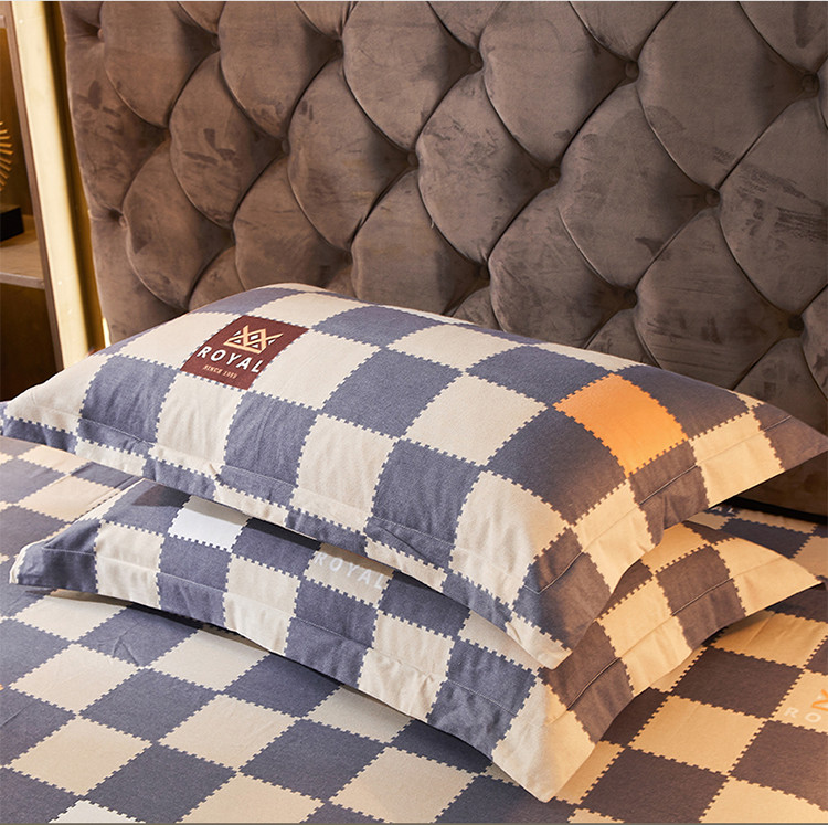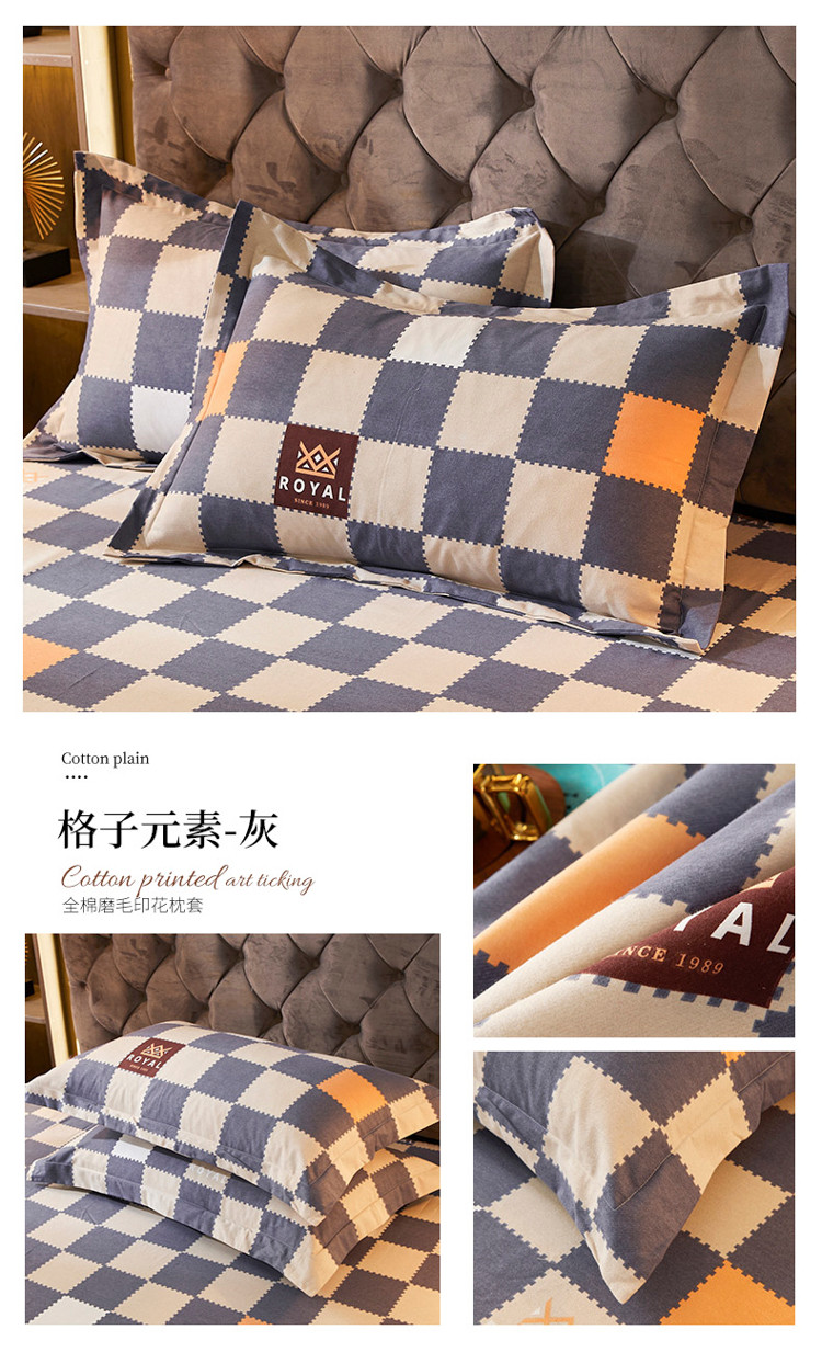 商品名称:伊而梦 2023新款全棉磨毛印花四件套系列单品枕套 格子元素-灰