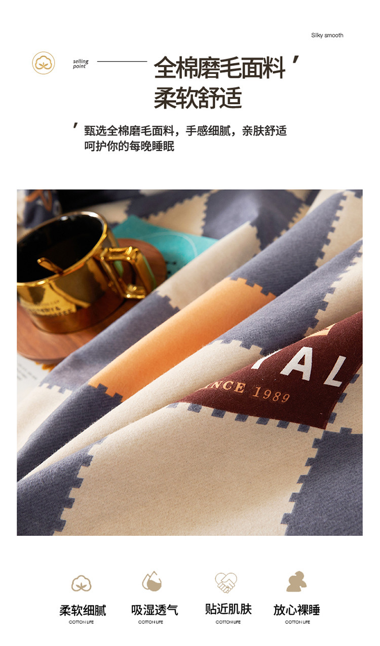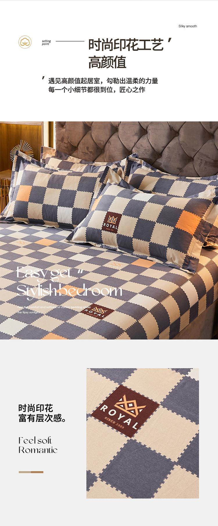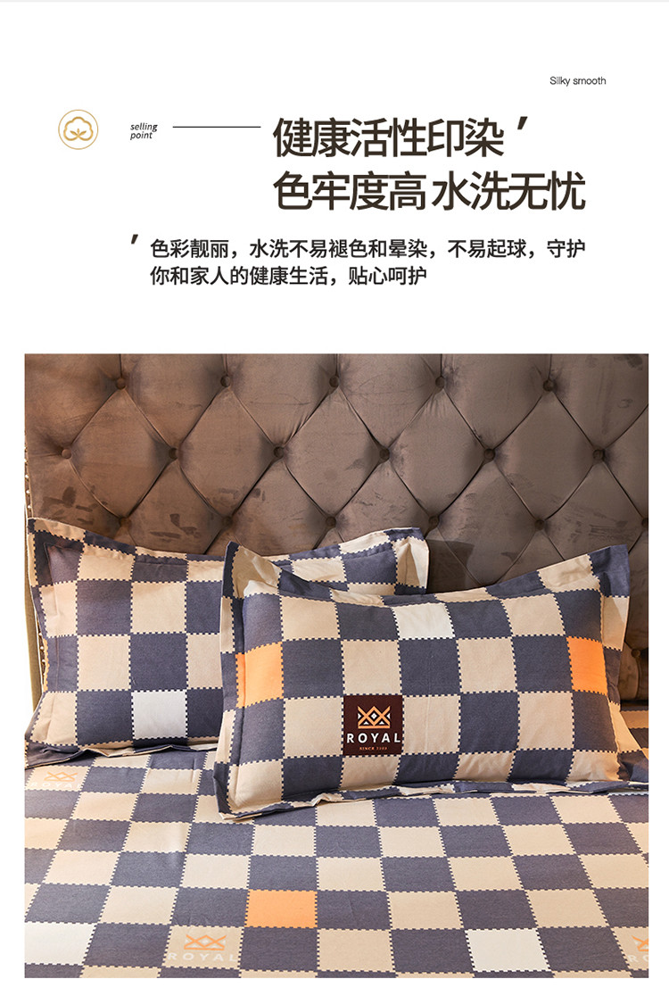 商品名称:伊而梦 2023新款全棉磨毛印花四件套系列单品枕套 格子元素-灰