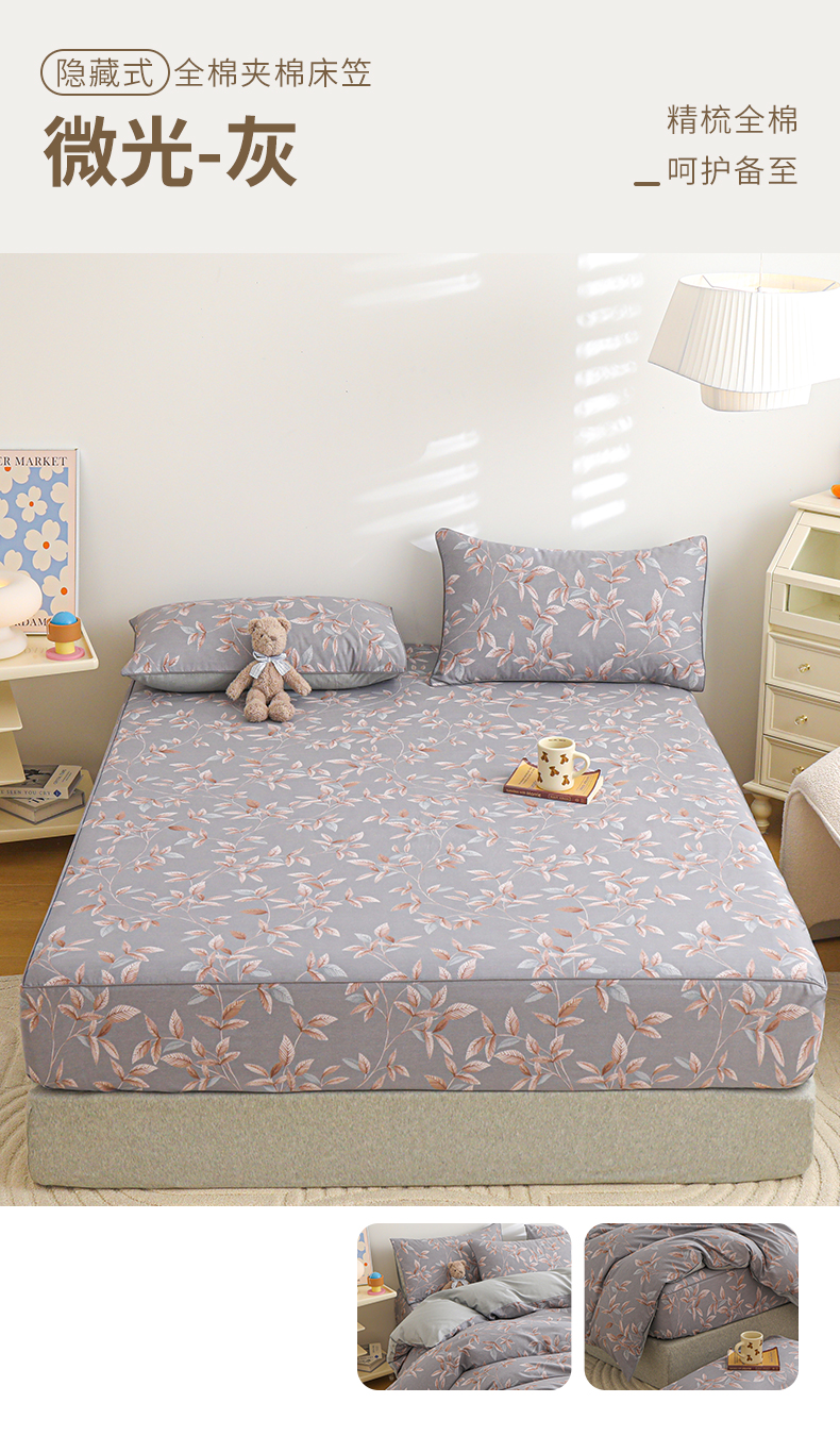 商品名称:元元 2024新款13372加密精梳全棉单品套件系列-单床笠 微光-灰