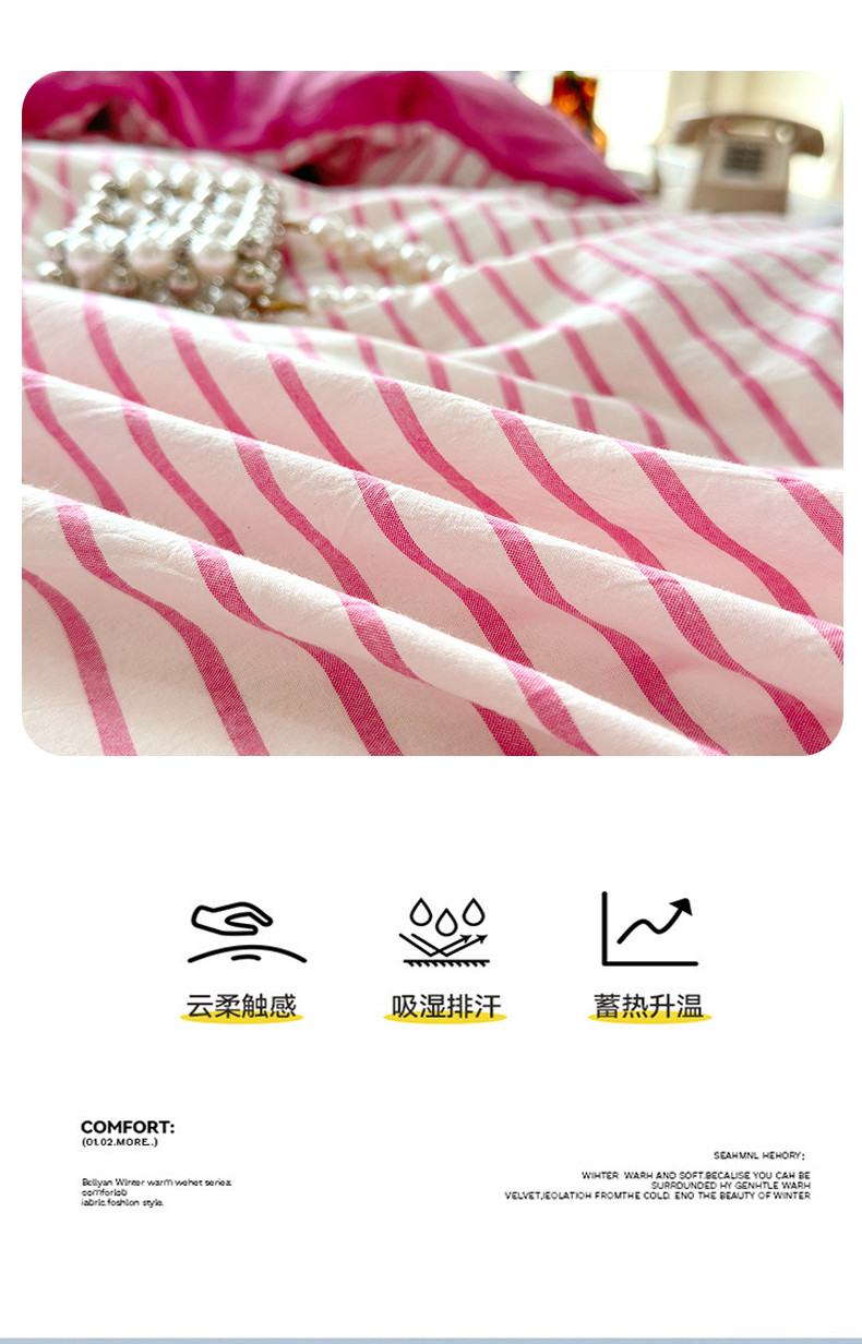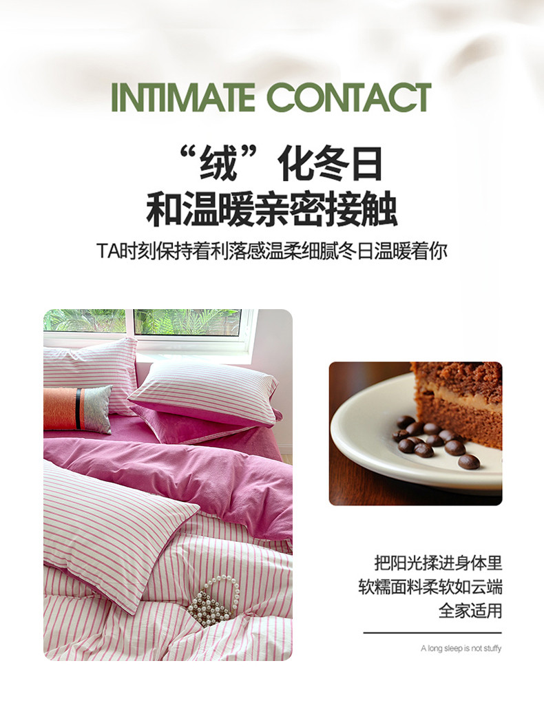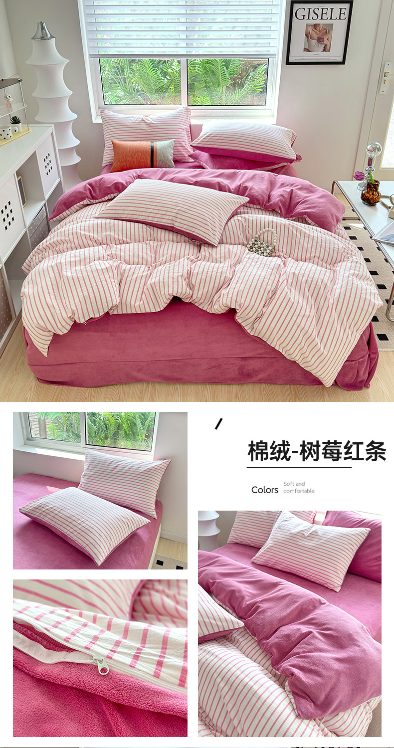 当前位置: 91家纺网 > 商品网购 > 床品套件 > 四件套 > 牛奶绒四件套 > 三沁 2023新款全棉水洗棉加绒四件套 棉绒-树莓红条