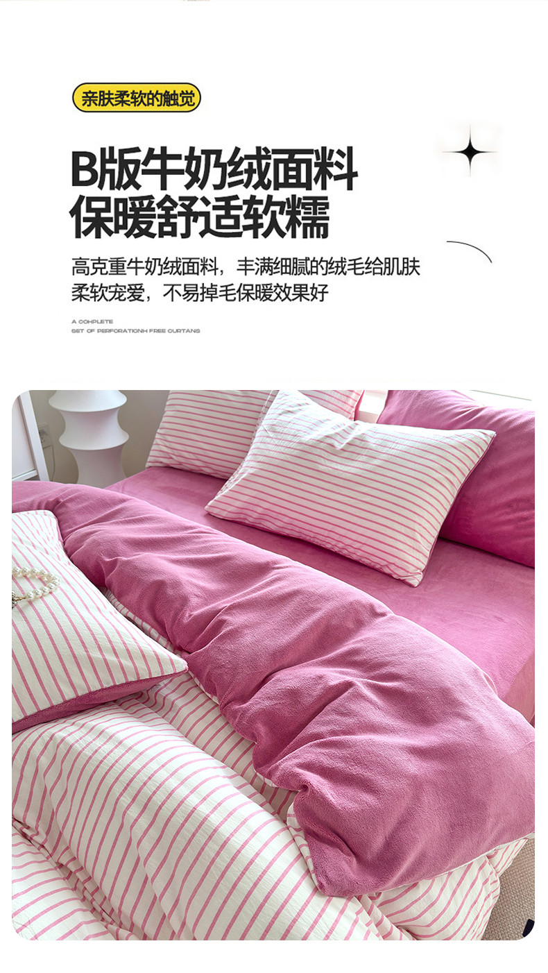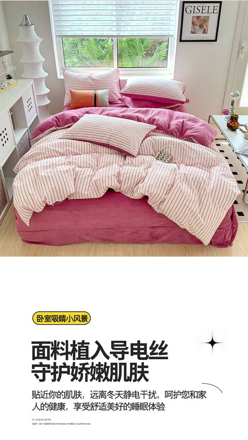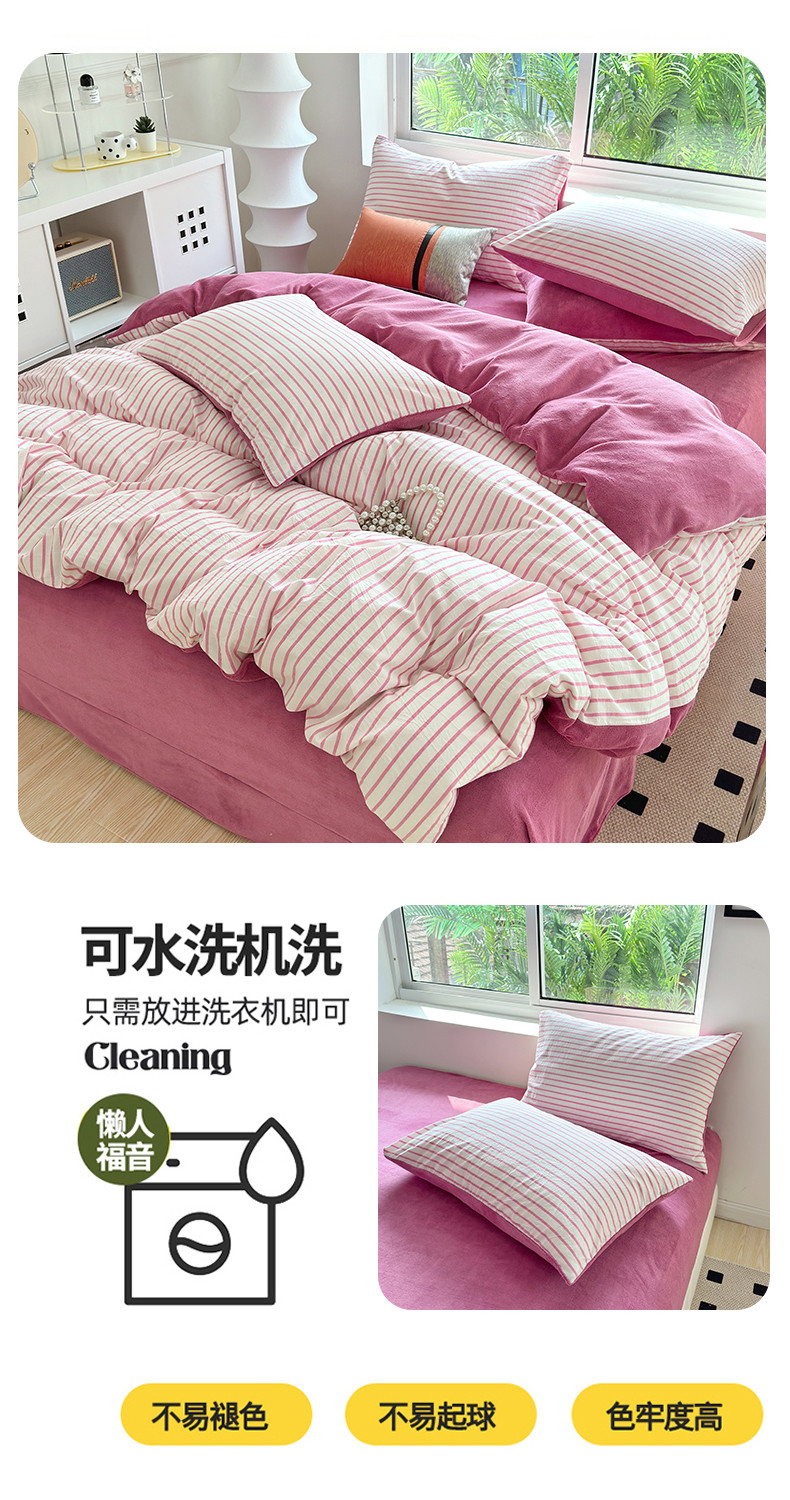 当前位置: 91家纺网 > 商品网购 > 床品套件 > 四件套 > 牛奶绒四件套 > 三沁 2023新款全棉水洗棉加绒四件套 棉绒-树莓红条