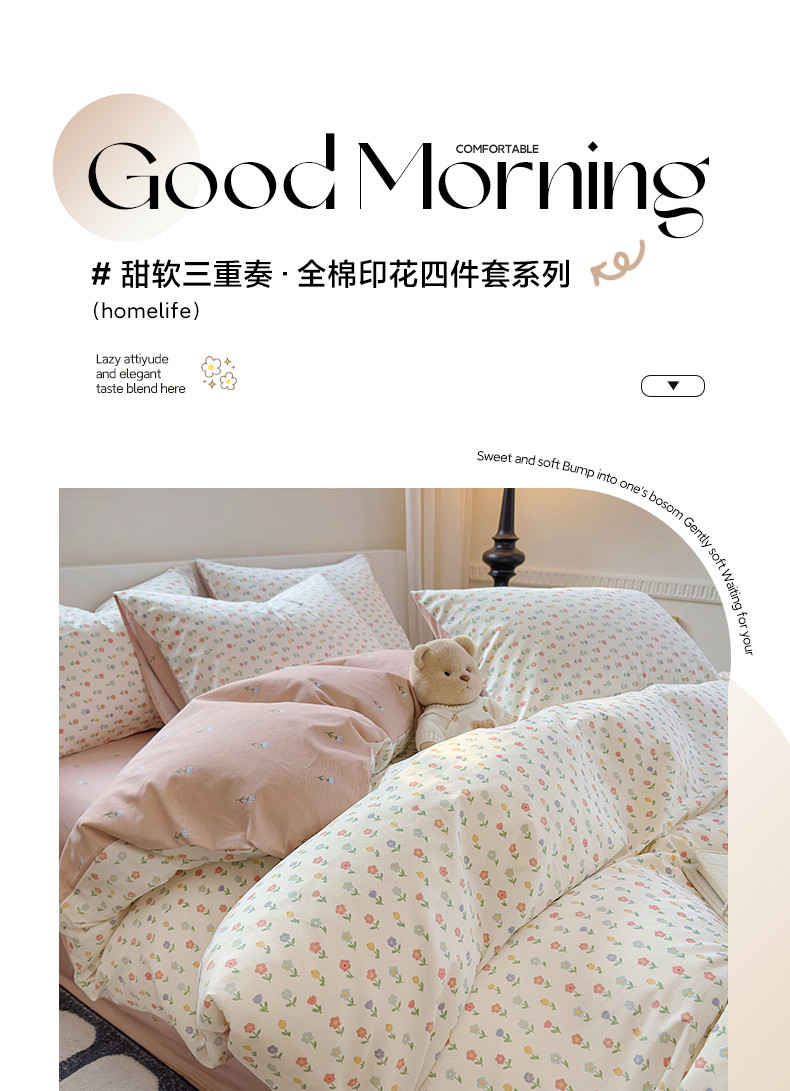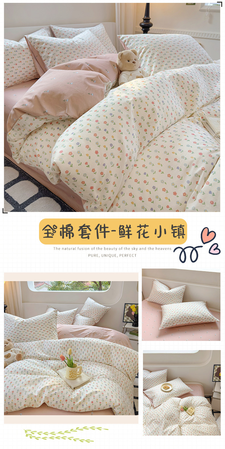 当前位置: 91家纺网 > 商品网购 > 床品套件 > 四件套 > 全棉普通四件套 > 百寐2024小清新碎花卡通13372全棉四件套纯棉床单床笠款鲜花小镇