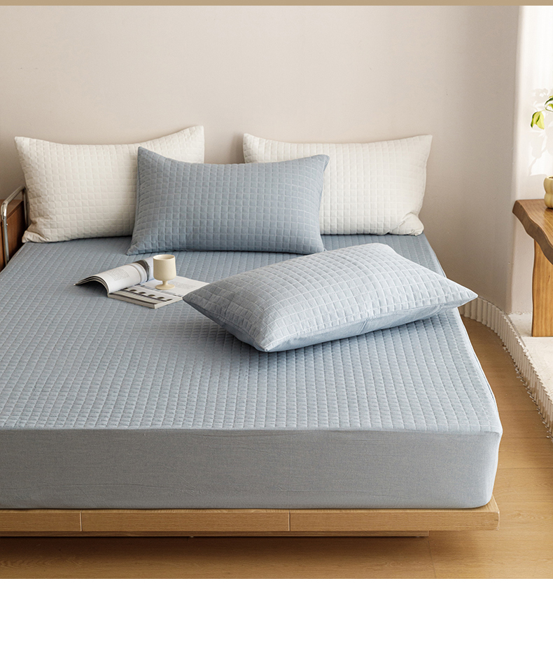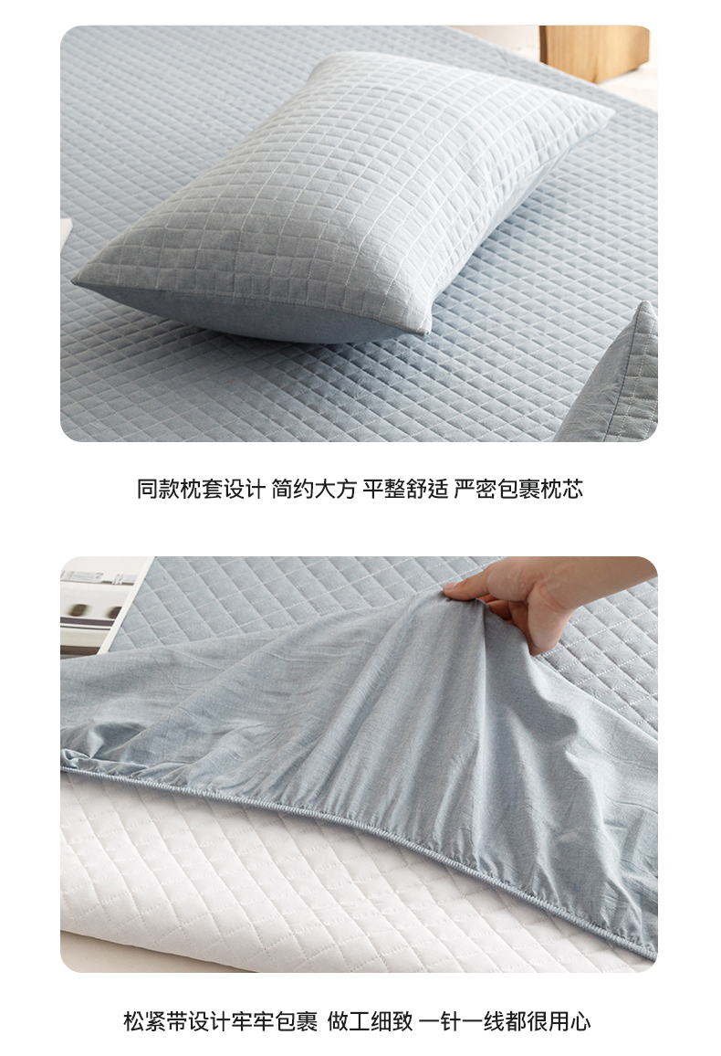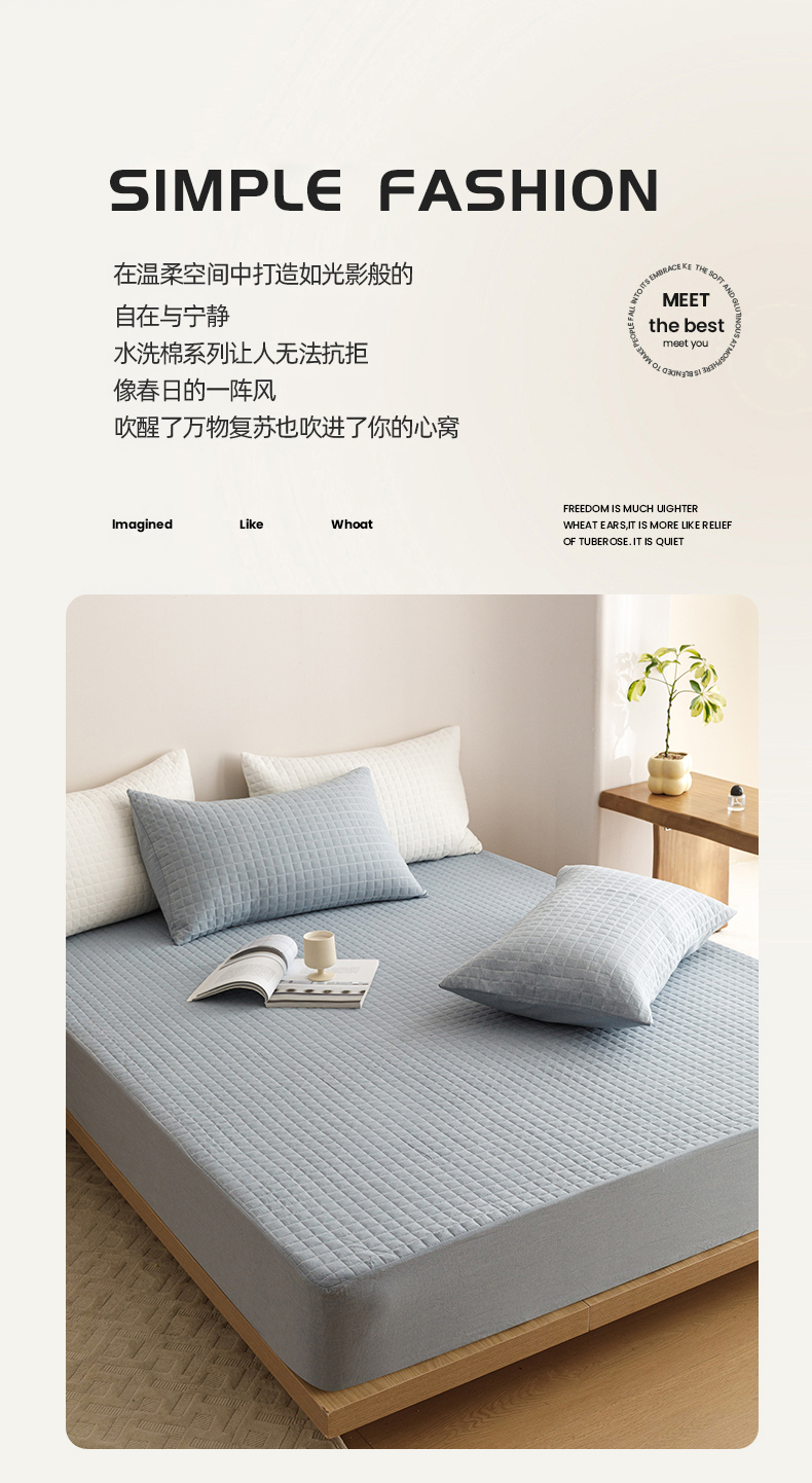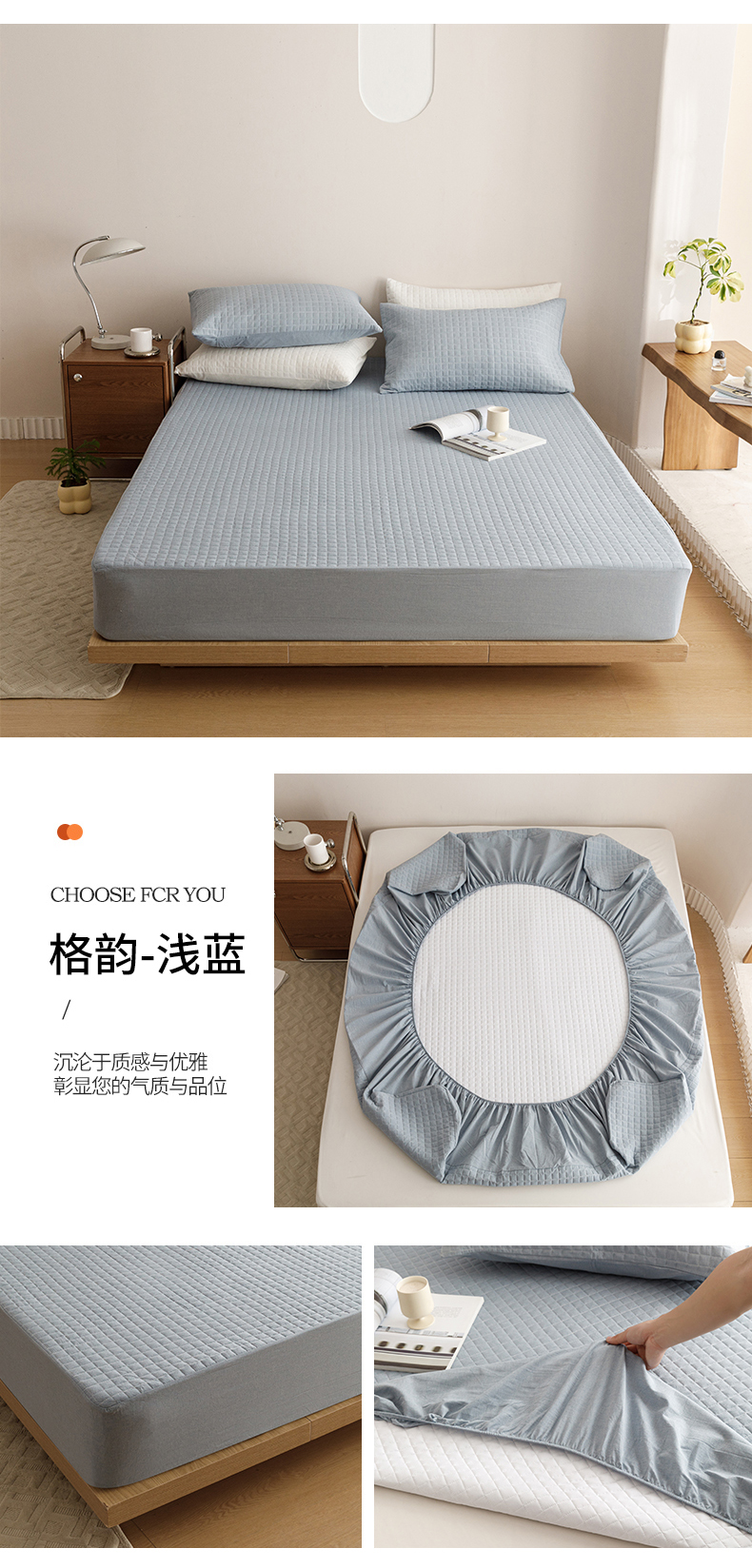 商品名称:忘忧草 2023新款A类全棉色织水洗夹棉床笠 格韵-浅蓝