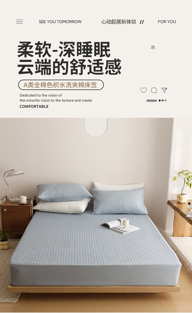 (总)忘忧草 2025新款A类全棉色织水洗夹棉床笠纯棉,格韵-卡其,格韵-浅灰,格韵-浅蓝,格韵-粉玉,格韵-雅白