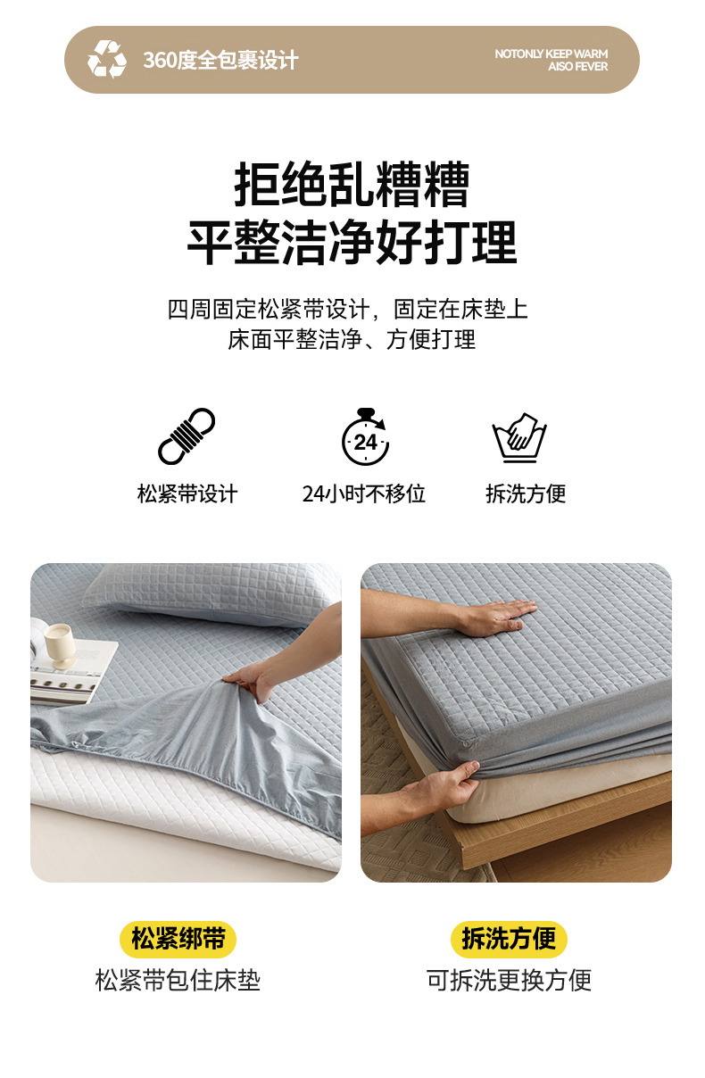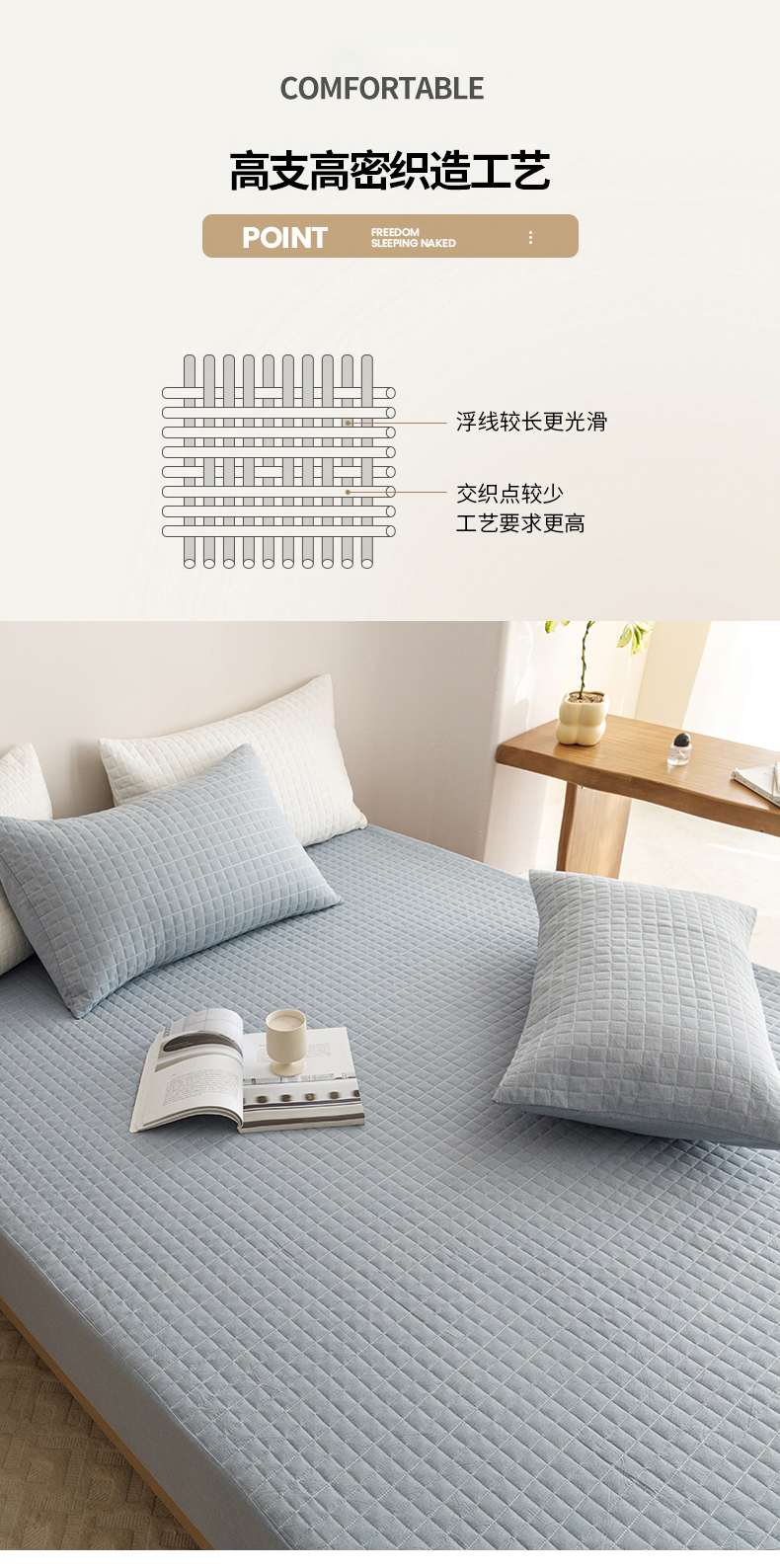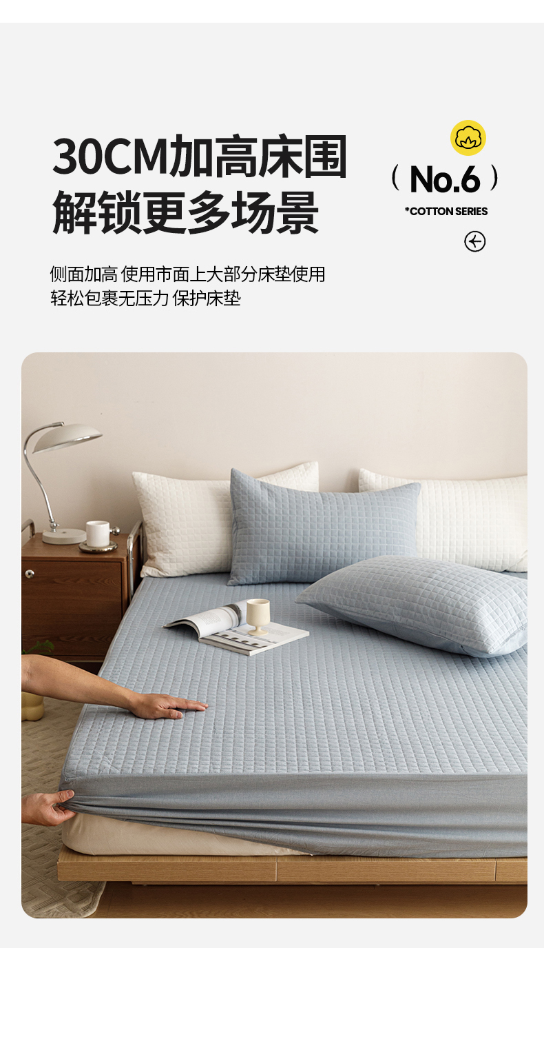 (总)忘忧草 2025新款A类针织棉夹棉防水床笠隔尿垫床罩,淡雅白,豆沙红,翡翠绿,丽人粉,浅米黄,绅士灰