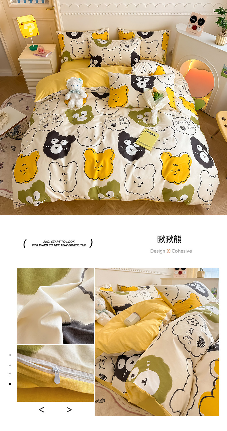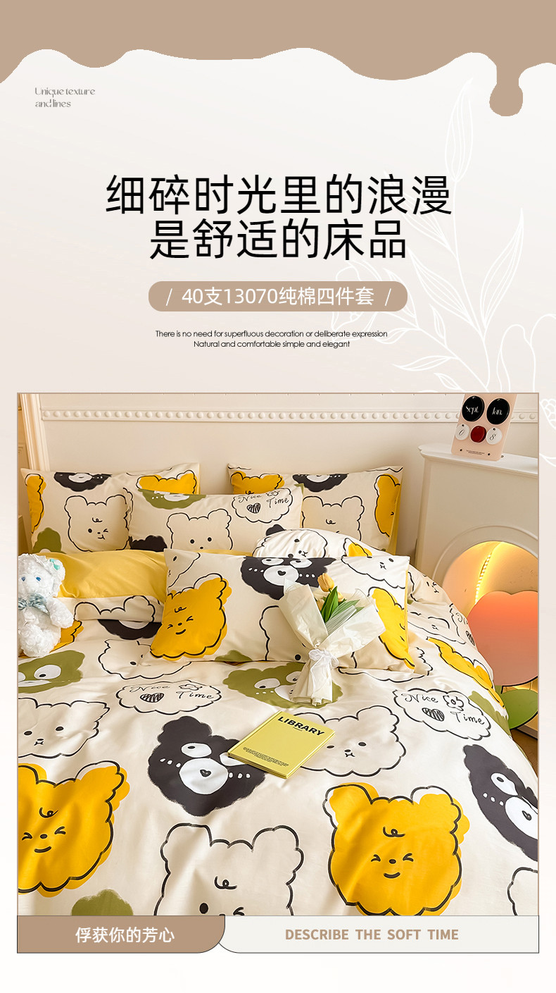 商品名称:简宜家居 2025新款40支13070纯棉花卉系列四件套 瞅瞅熊
