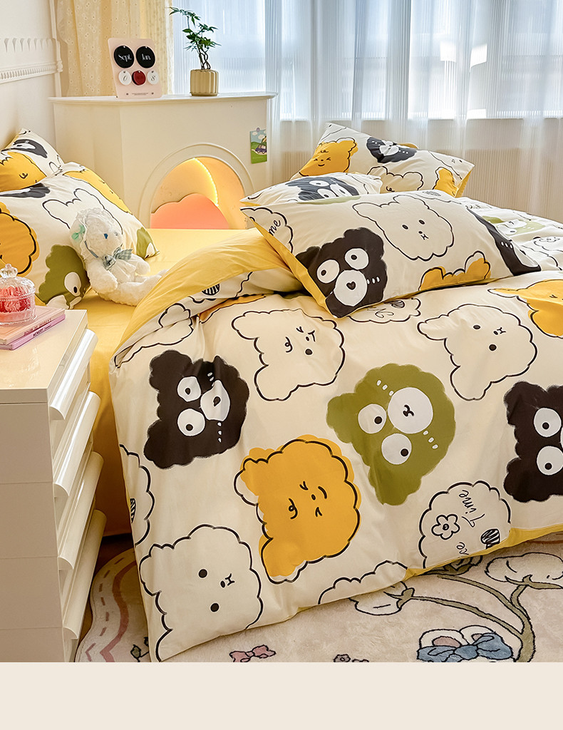 简宜2023新款13070纯棉全棉40支斜纹卡通小清新学生三件套四件套,花园兔,紫葡仙子,倩影粉,hello 萌熊,嘟嘟小车,简笔画,开心小黄鸭,梦幻城堡,浓情爱意