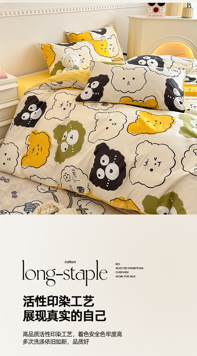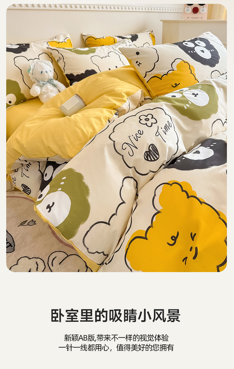 (总)简宜家居(朝初家纺) 2025新款全棉12868斜纹卡通花卉学生三件套四件套,粉格卡通猫,粉红可爱兔,粉色猫-小格,简约-学院熊,简约-音乐熊,简约-棕调,快乐腊肠狗,蓝格欢乐,萌宠格子铺,萌友聚会,奶牛smile,甜心萌犬