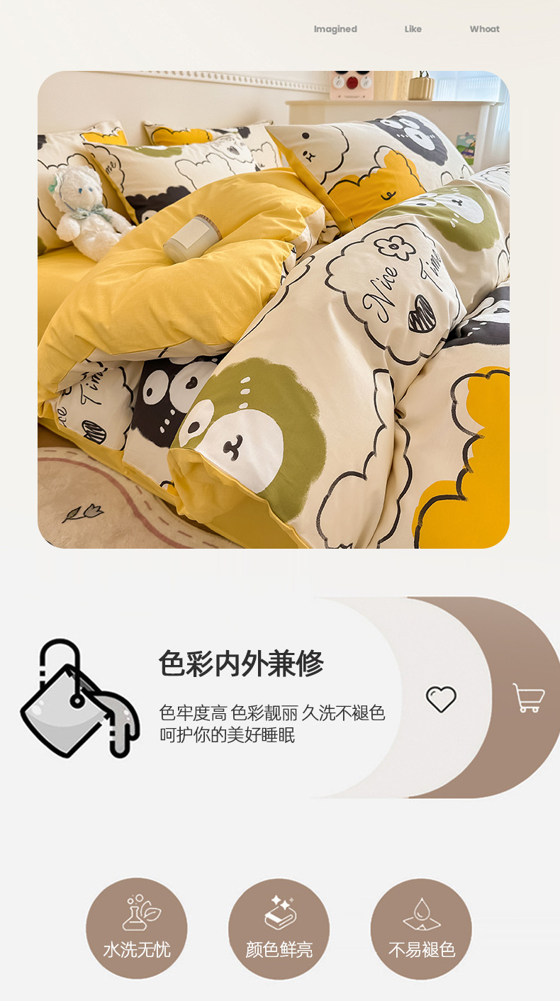 (总)简宜家居 2023新款小清新卡通纯棉全棉斜纹四件套,贩卖美好,蓝彩,蓝色心愿,梦享,奇妙农场,星月童话