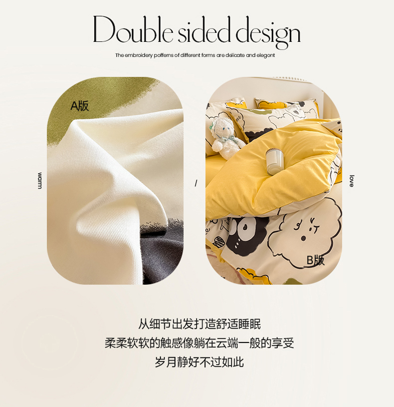 (总)简宜家居(朝初家纺) 2025新款印花兔兔绒+纯色牛奶绒双拼四件套,蝶影暖绒,米绒花絮,墨绒花-奶白,秋枝果绿,秋枝焦糖,一支秀-咖