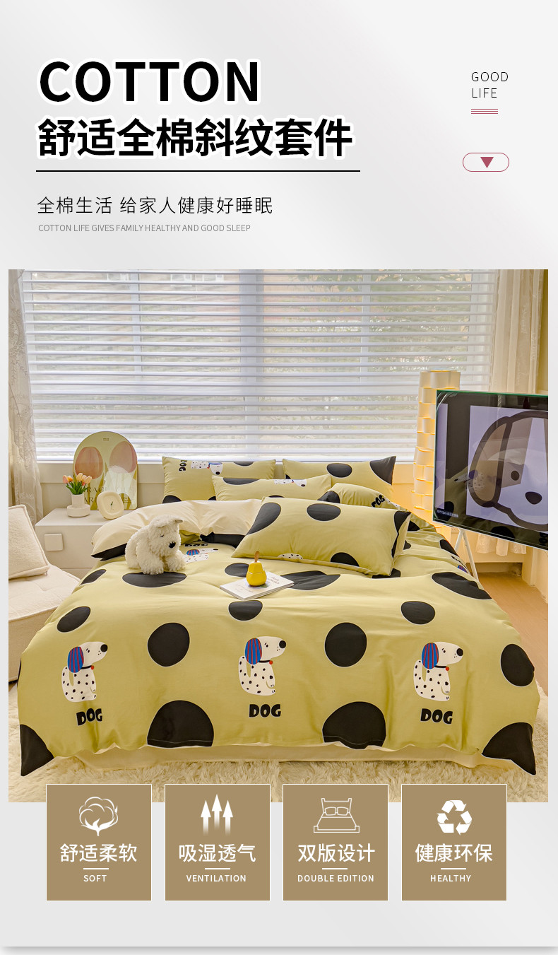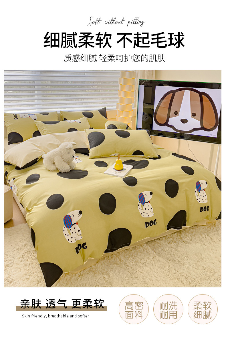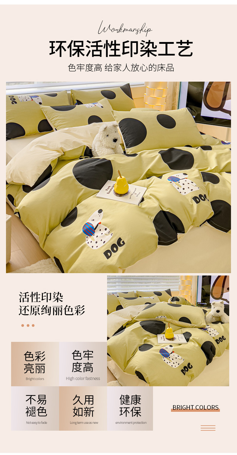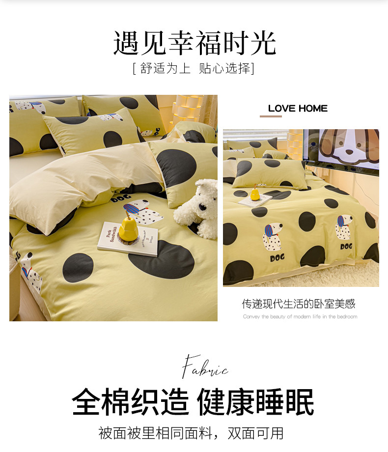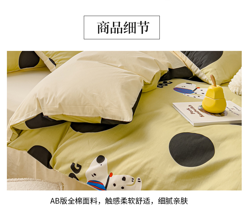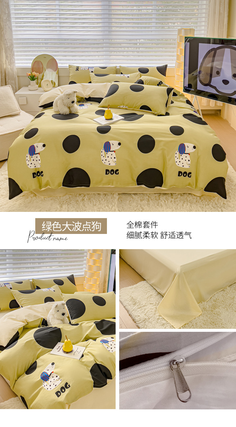 当前位置: 91家纺网 > 商品网购 > 床品套件 > 四件套 > 全棉普通四件套 > 金丝鸟 2024新款全棉可爱卡通四件套 绿色大波点狗