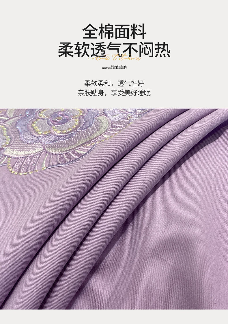 商品名称:欧冠家纺 2024新款全棉蕾丝珍珠网纱四件套 丽丽贝尔系列 薰衣紫