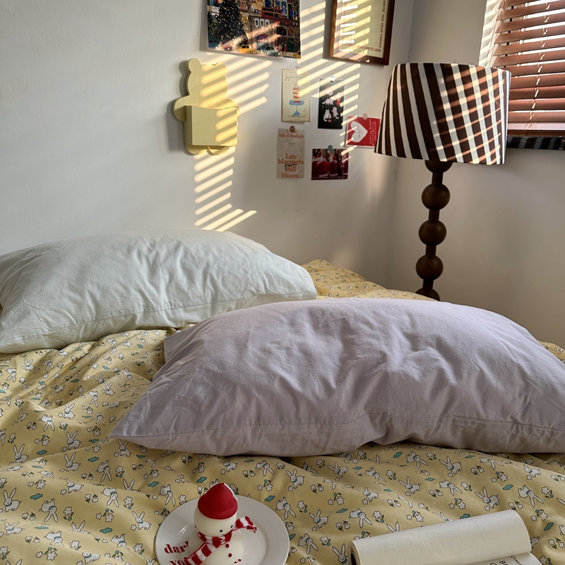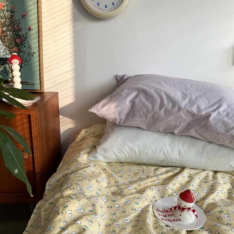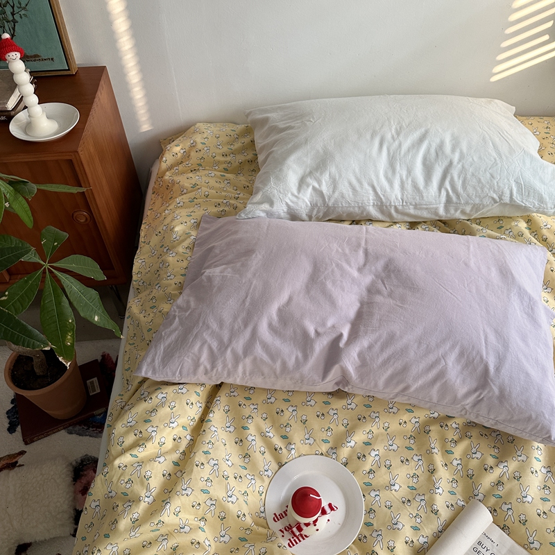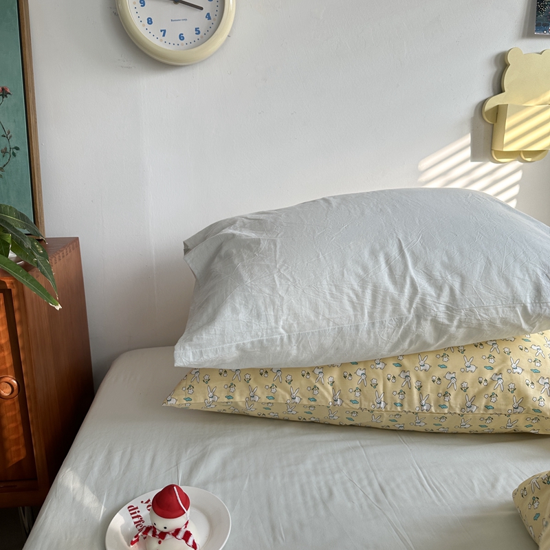 【柠檬兔兔】默认枕套混搭冰沙绿,也可搭配一对兔兔/香芋紫 请备注 ,床单/床笠颜色 冰沙绿