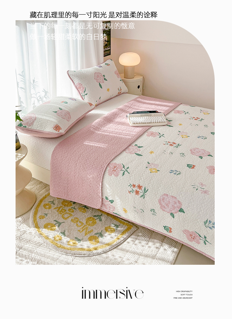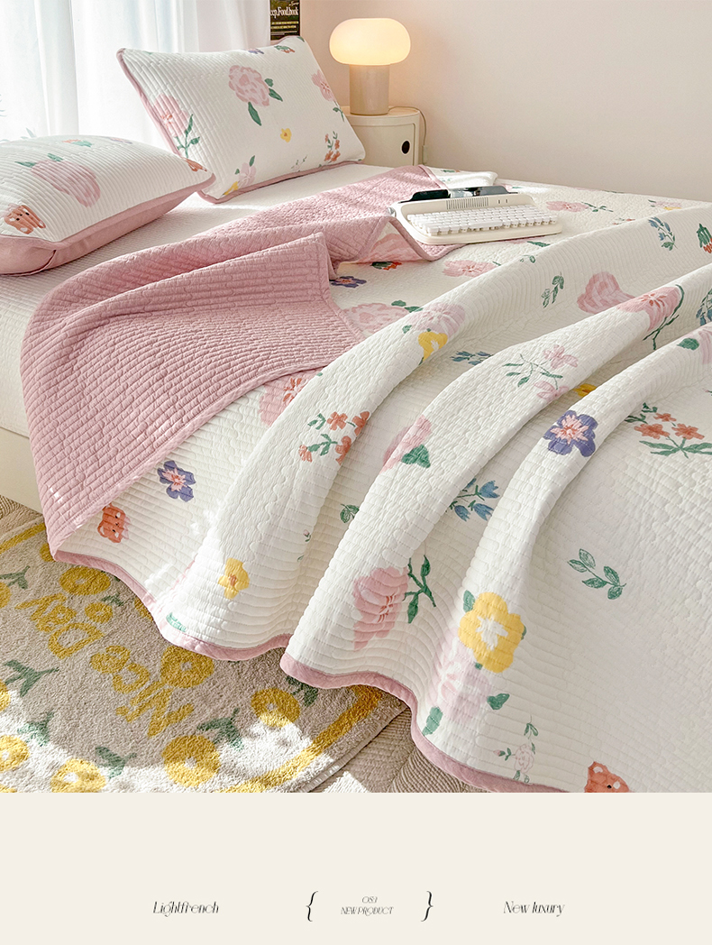 商品名称:茉夕家纺 2024新款纯棉斜纹13372双面纯棉床盖 朝花夕拾