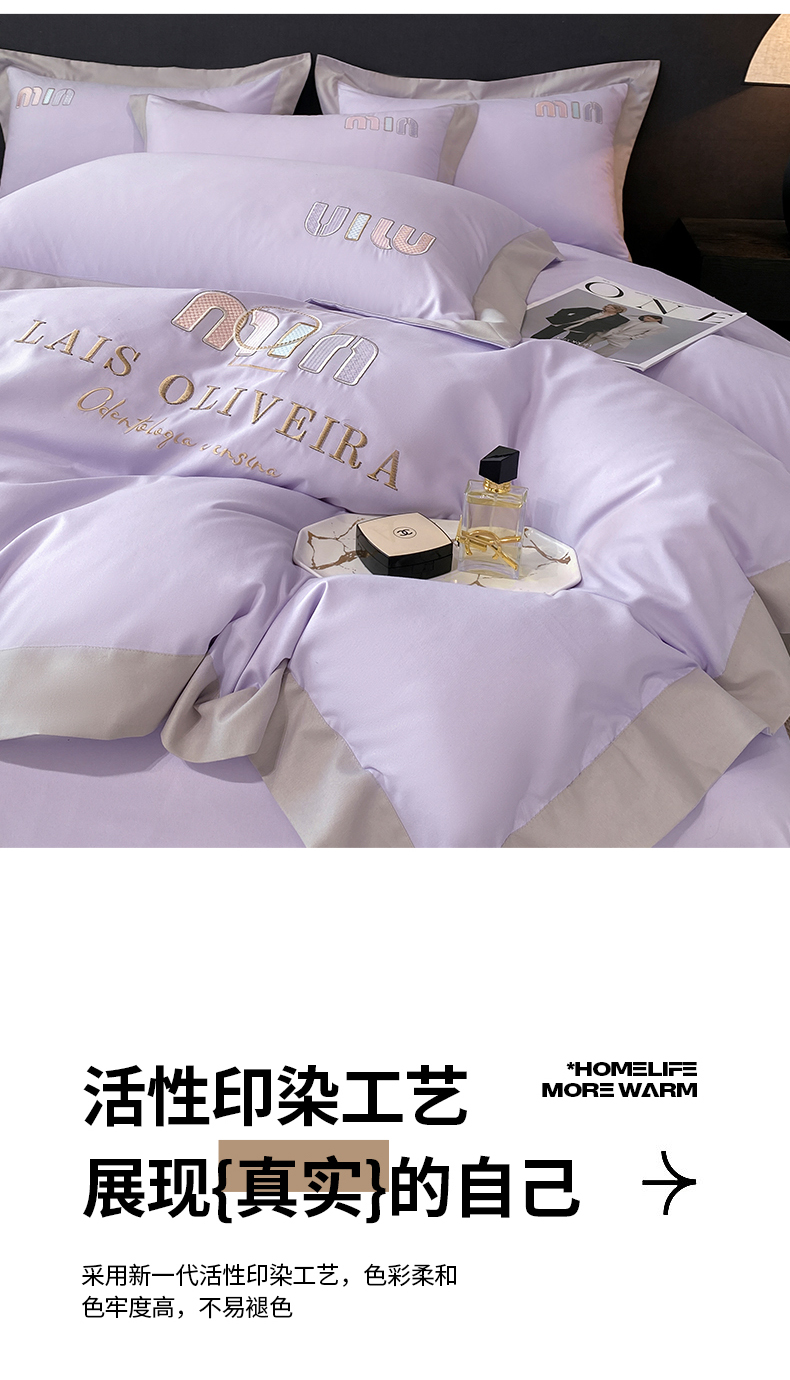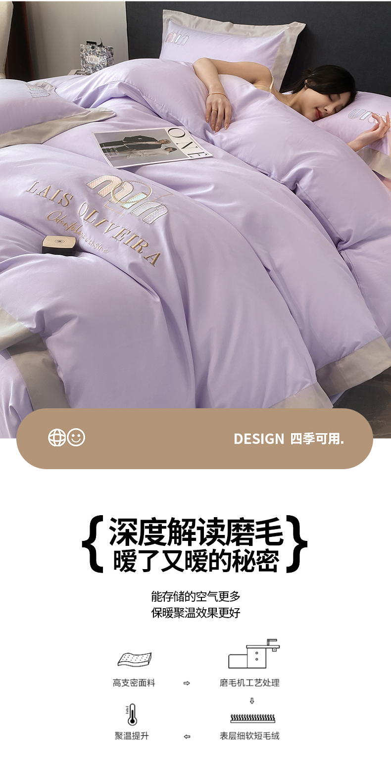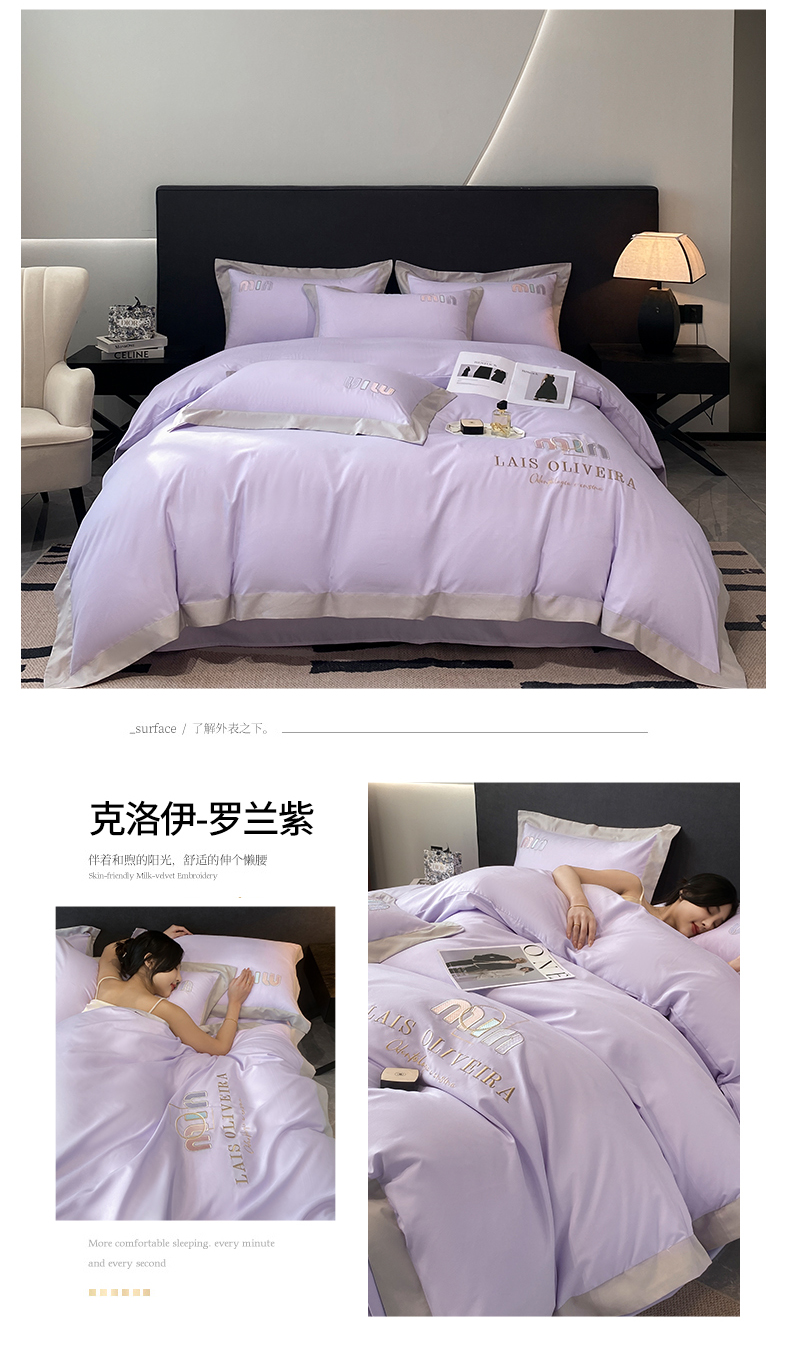 遇见家居生活馆 2024新款亲肤磨毛刺绣四件套-克洛伊 克洛伊-罗兰紫