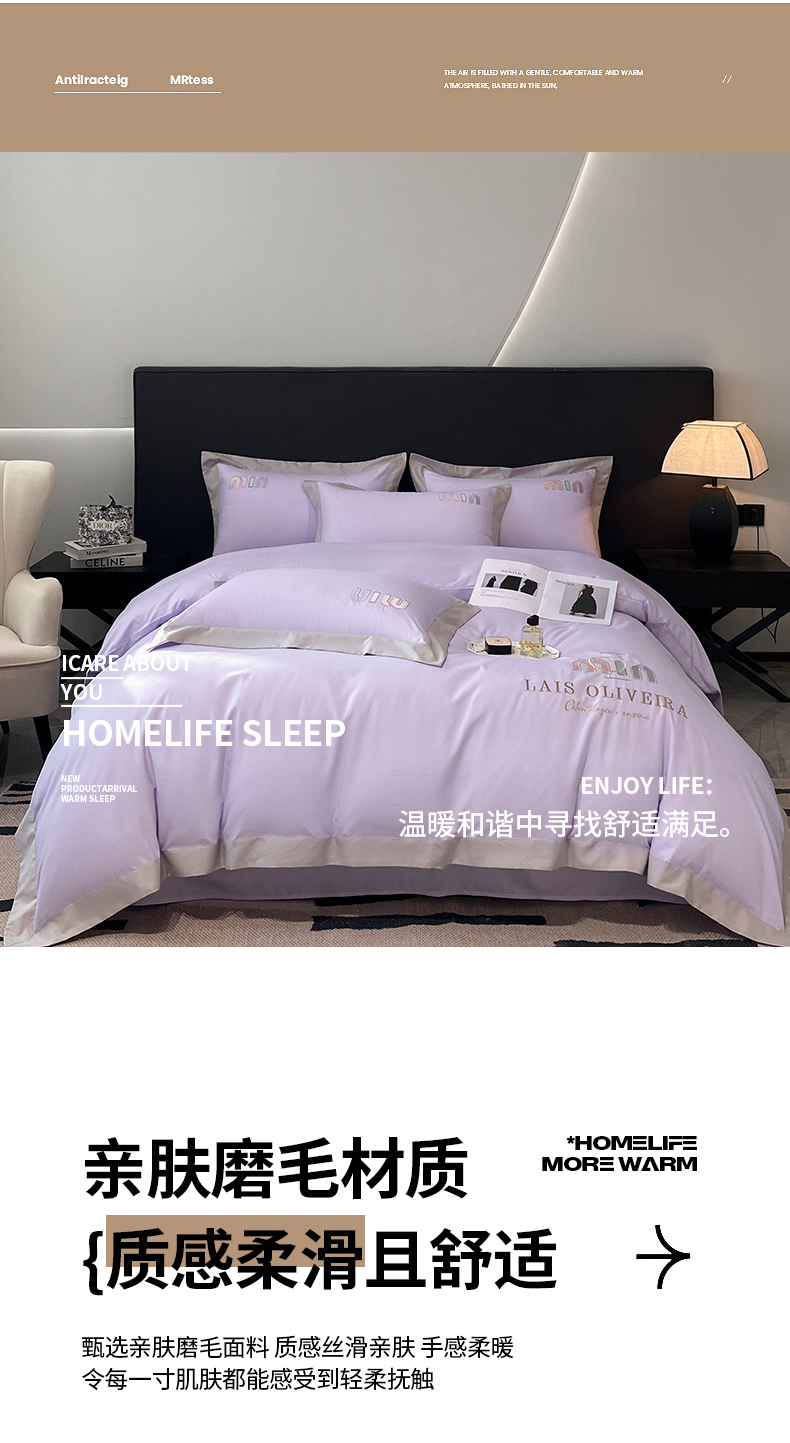 (总)遇见家居生活馆 2025新款A类牛奶绒玛利亚绒宽边四件套(控价:标准178,加大188,床笠款183),靓粉+星辰灰,丁香紫+星辰灰,清澈蓝+星辰灰,奶昔白+亚麻驼,经典灰+香槟,宾利蓝+星辰灰