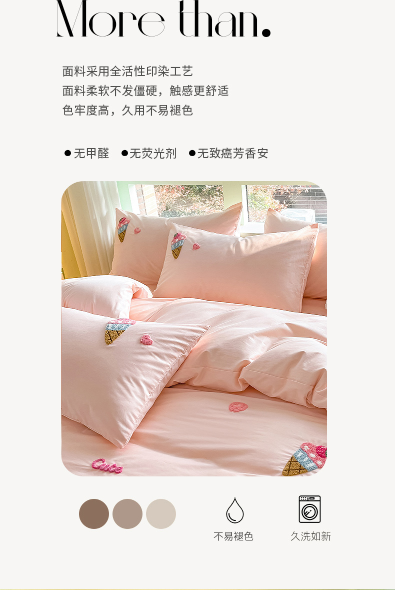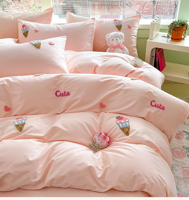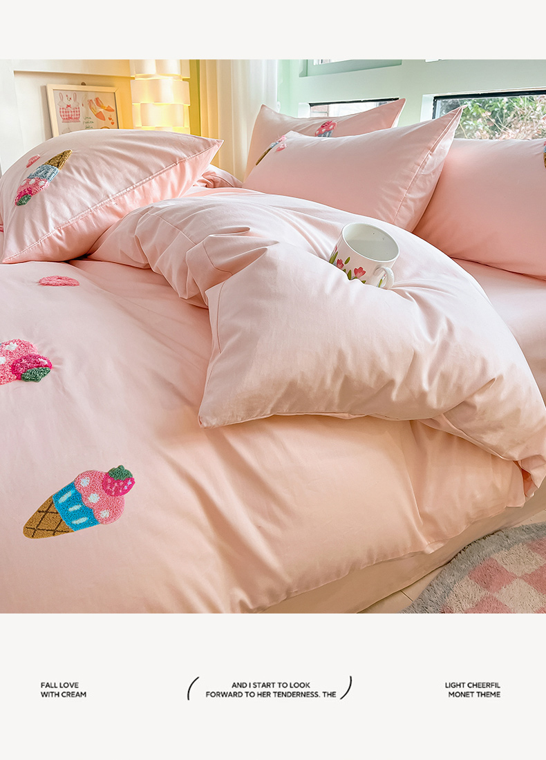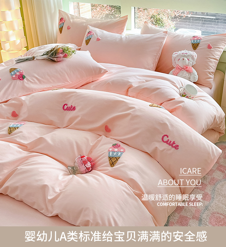 当前位置: 91家纺网 > 商品网购 > 床品套件 > 四件套 > 全棉普通四件套 > 泽西 2024新款全棉13376毛巾绣四件套-冰淇淋系列 冰淇淋-粉