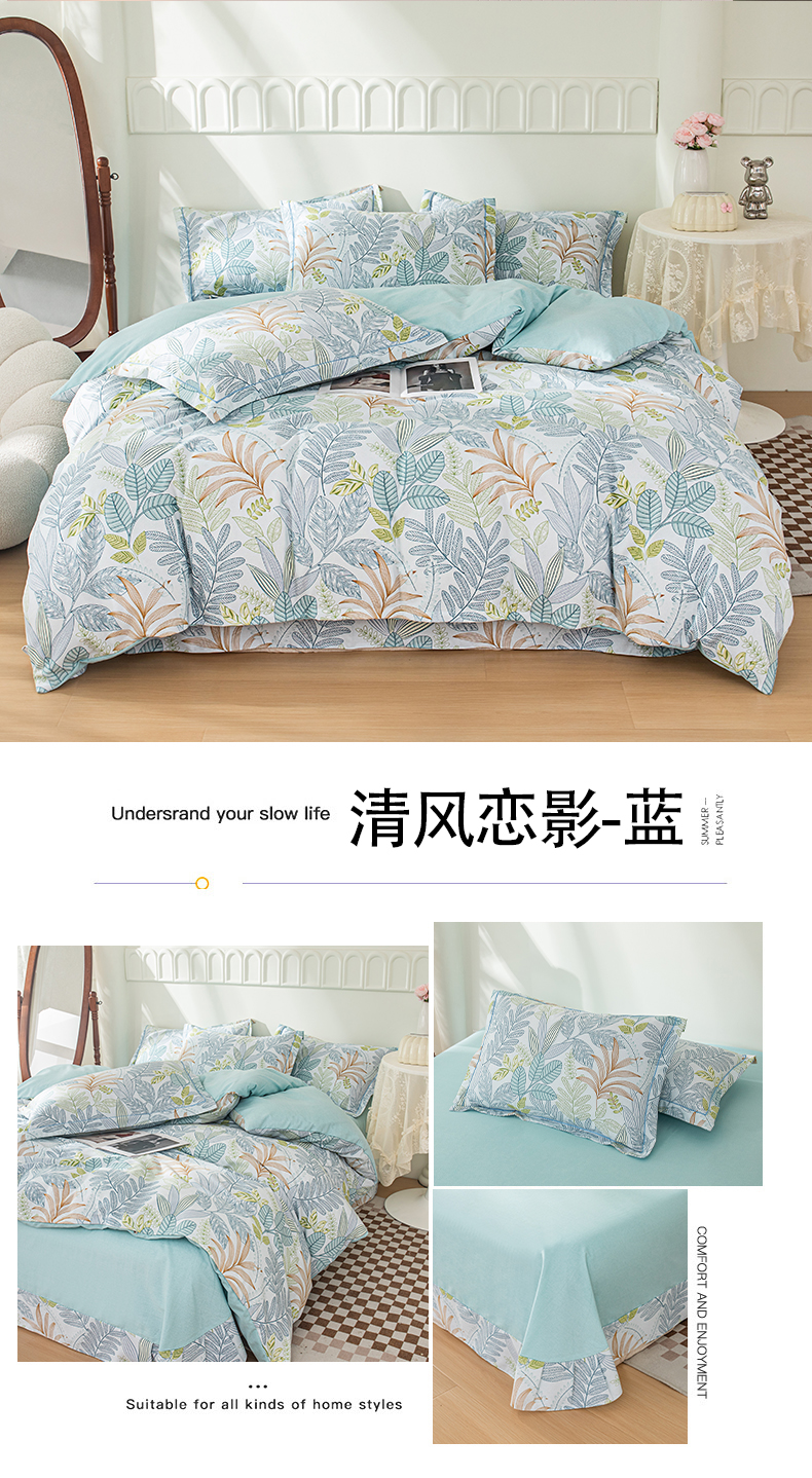 喜四方 2024新款全棉磨毛纯棉印花四件套 清风恋影-蓝