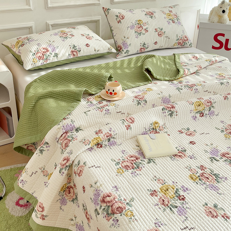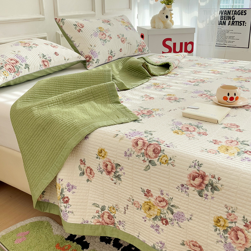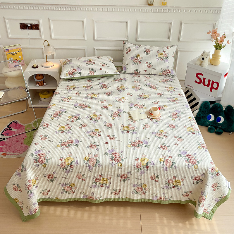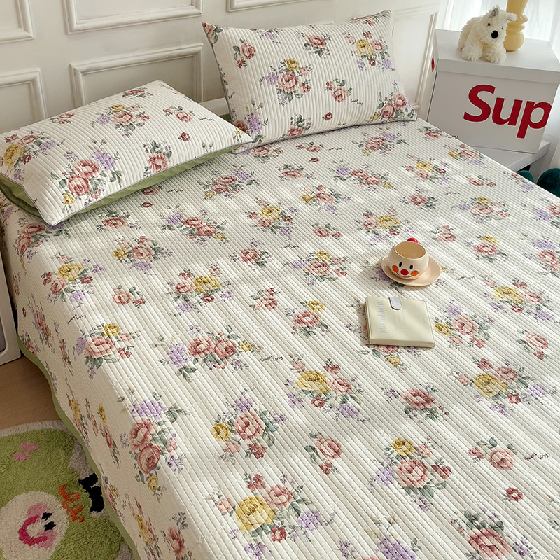 商品名称:沐纯家居 2024新款40S13372双面纯棉床盖三件套 粉末年华