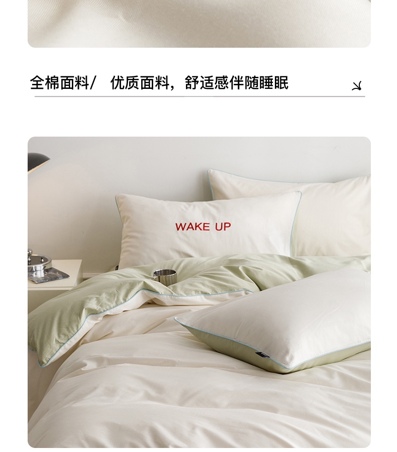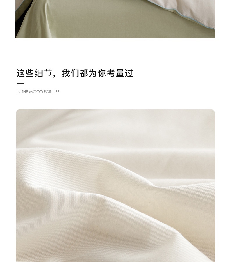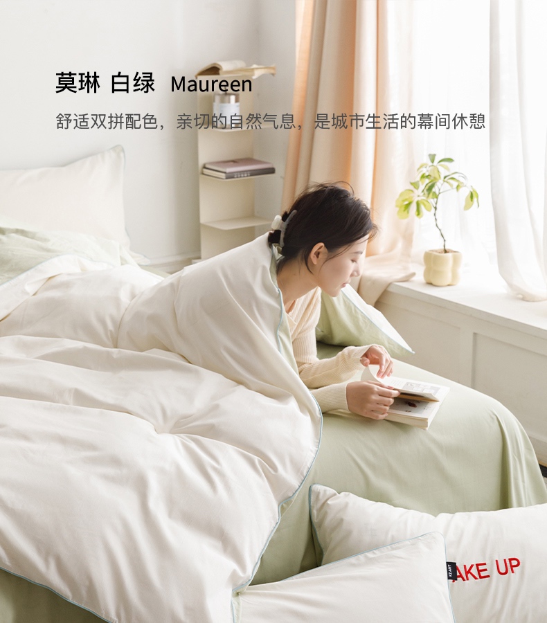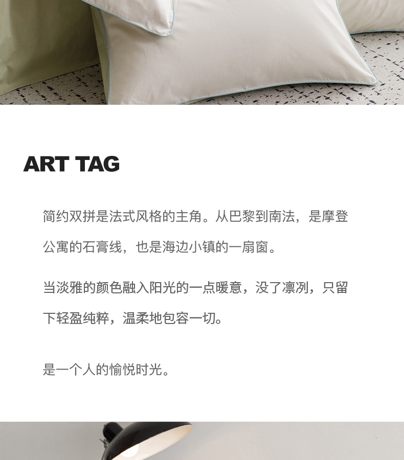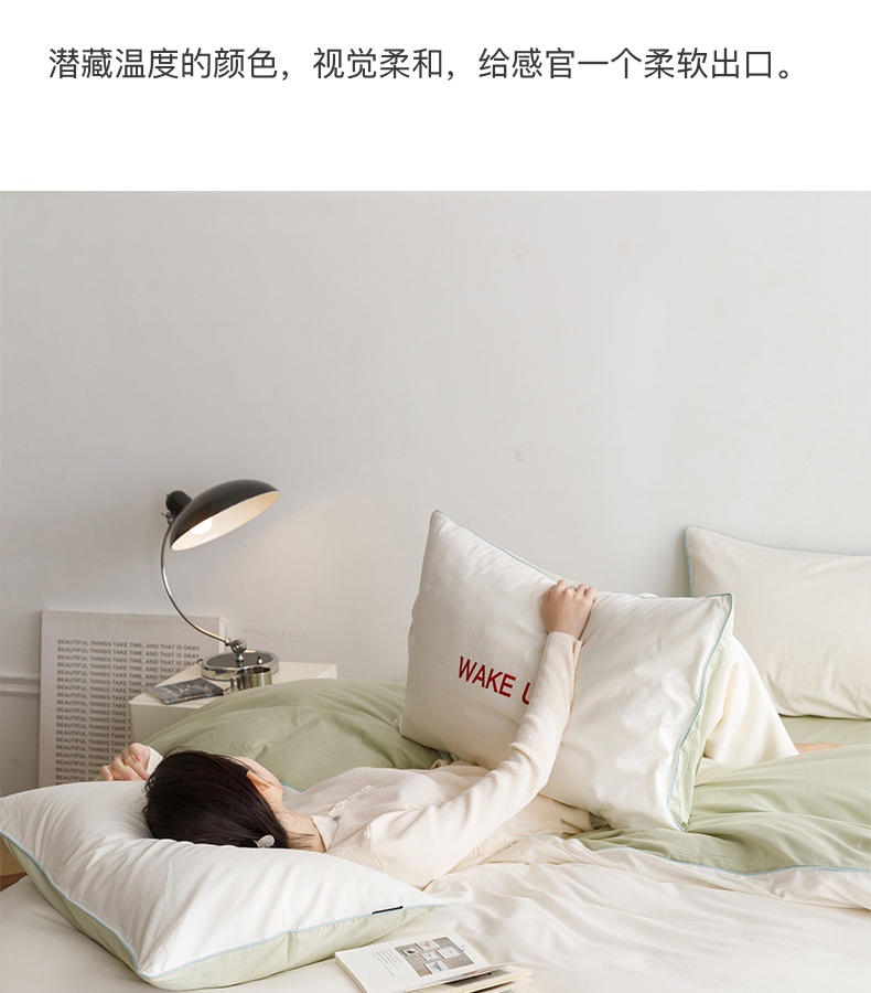 当前位置: 91家纺网 > 商品网购 > 床品套件 > 四件套 > 全棉活性四件套 > 卡姿家纺 2024春夏纯色双拼嵌绳款四件套—莫琳 莫琳白绿