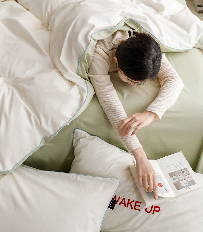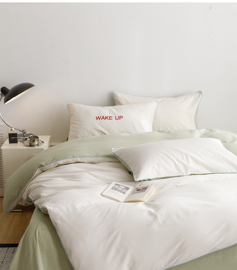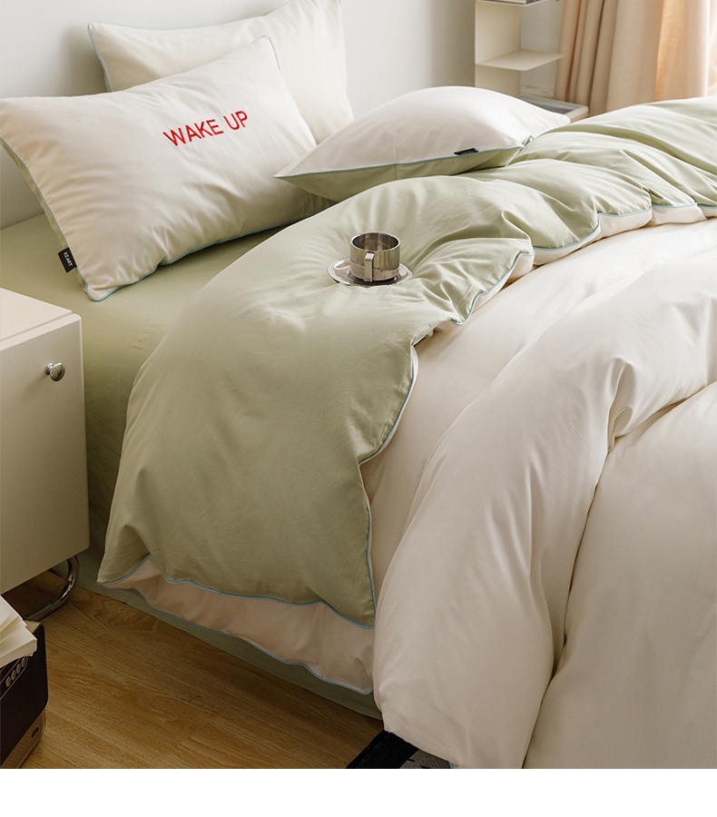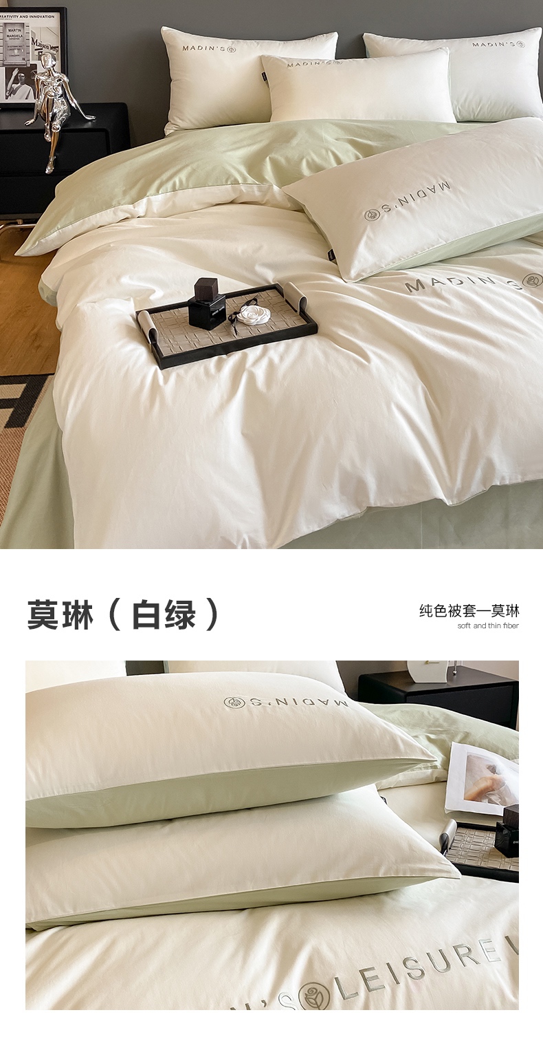 当前位置: 91家纺网 > 商品网购 > 床品套件 > 四件套 > 全棉活性四件套 > 卡姿家纺 2024春夏纯色双拼嵌绳款四件套—莫琳 莫琳白绿