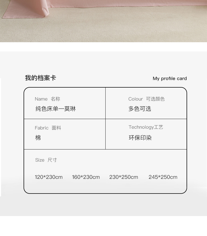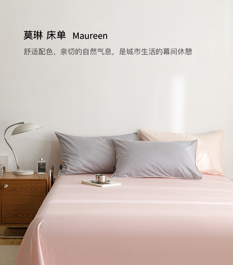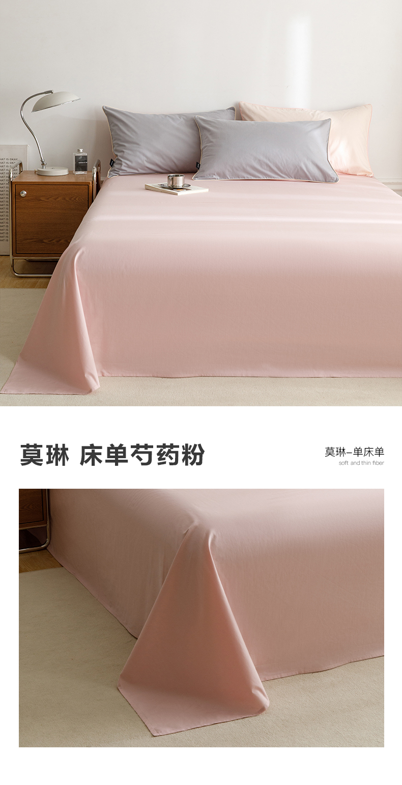 商品名称:卡姿家纺 2024春夏纯色双拼嵌绳款单床单—莫琳 莫琳 床单芍药粉