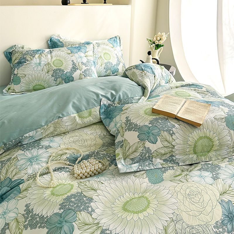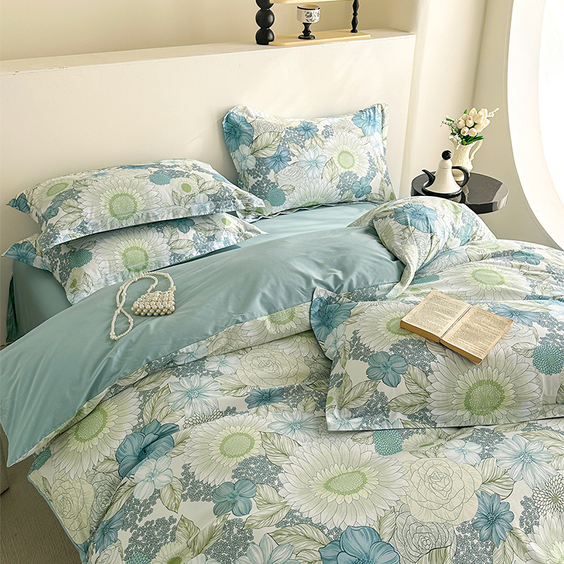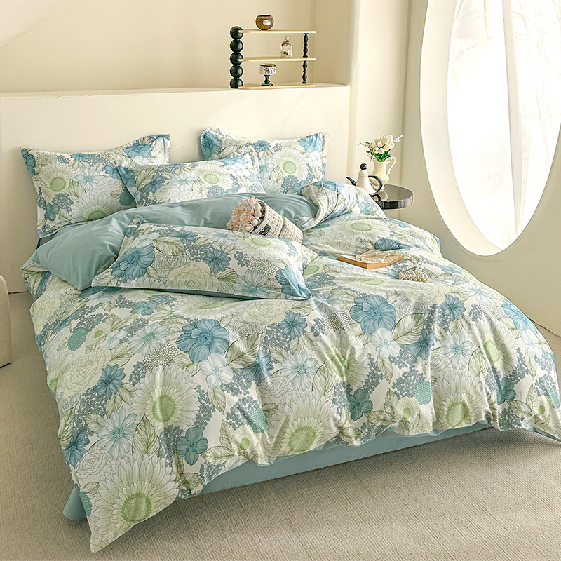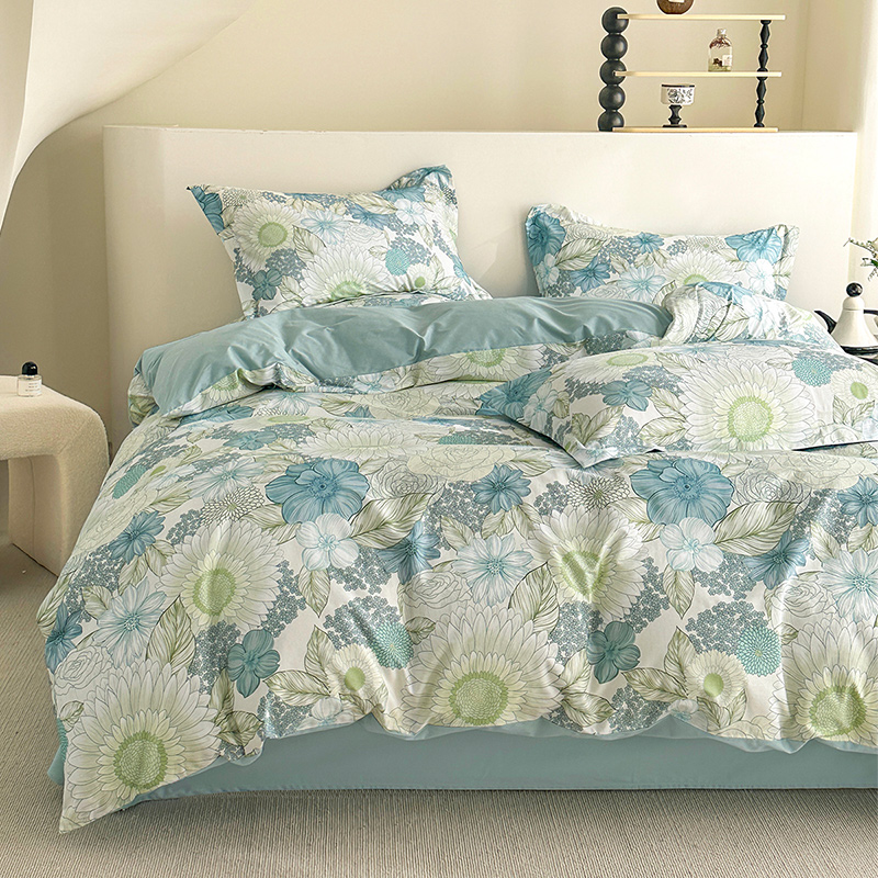 元元被芯 2024新款全棉长绒棉数码印花四件套全棉四件套纯棉四件套 雪域森林-兰