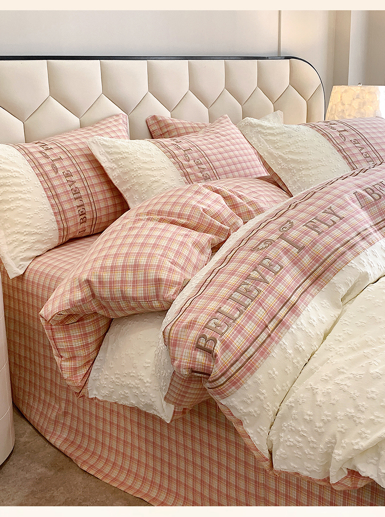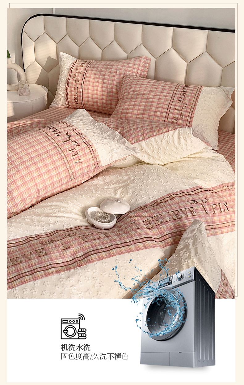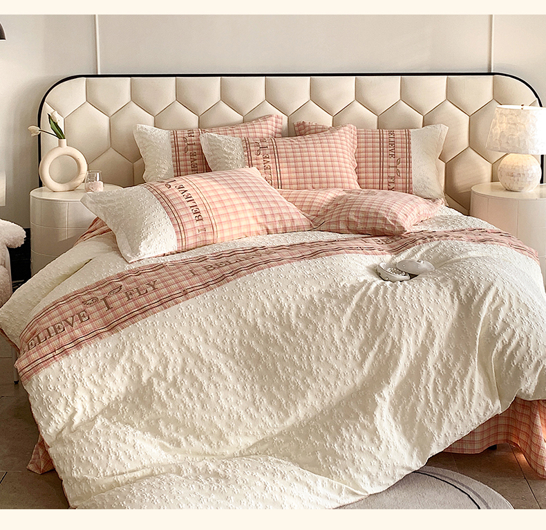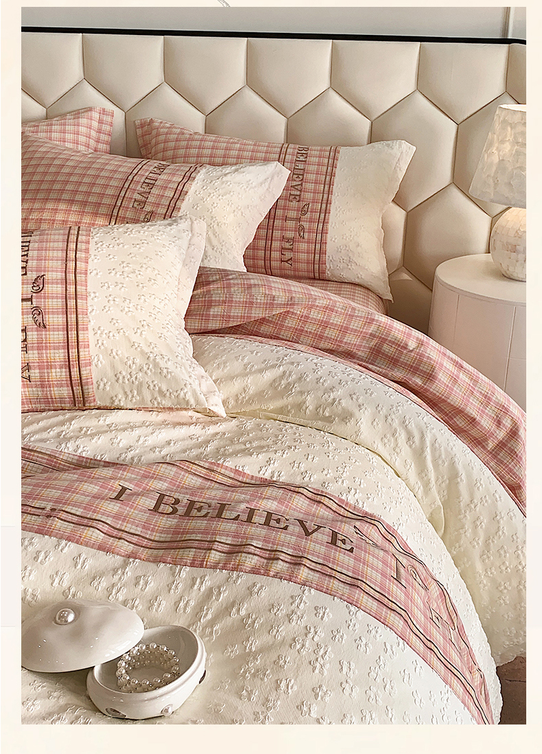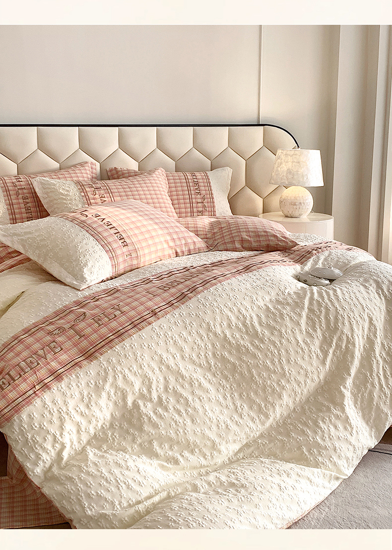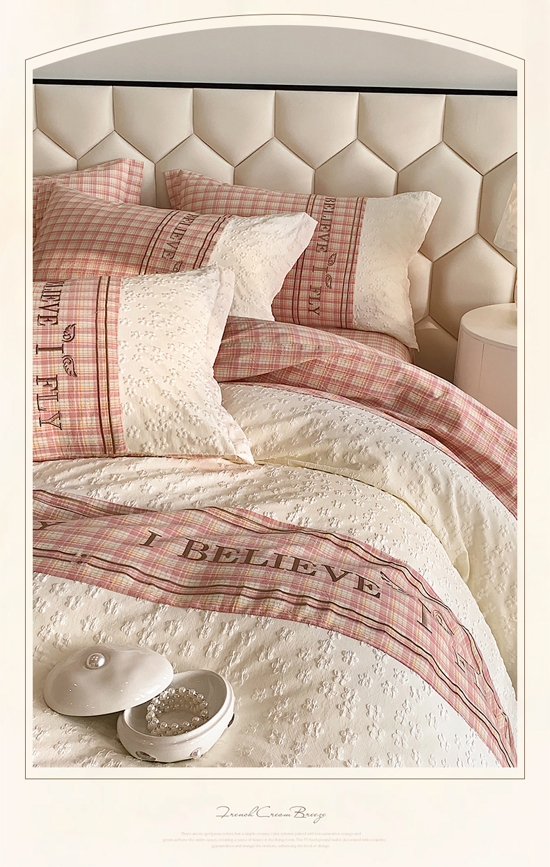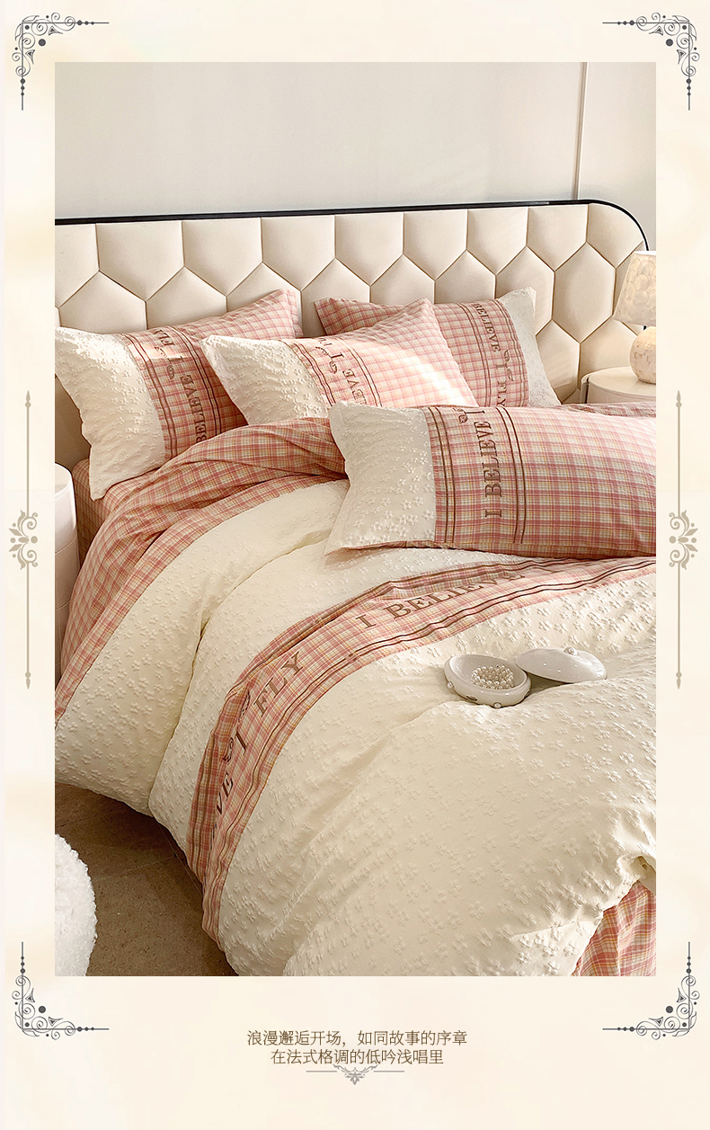 (总)换种生活 2024新款法式小清新全棉夏被四件套,冰玫粉,海之兰,奶昔白,青稞绿,生椰拿铁,松露黑