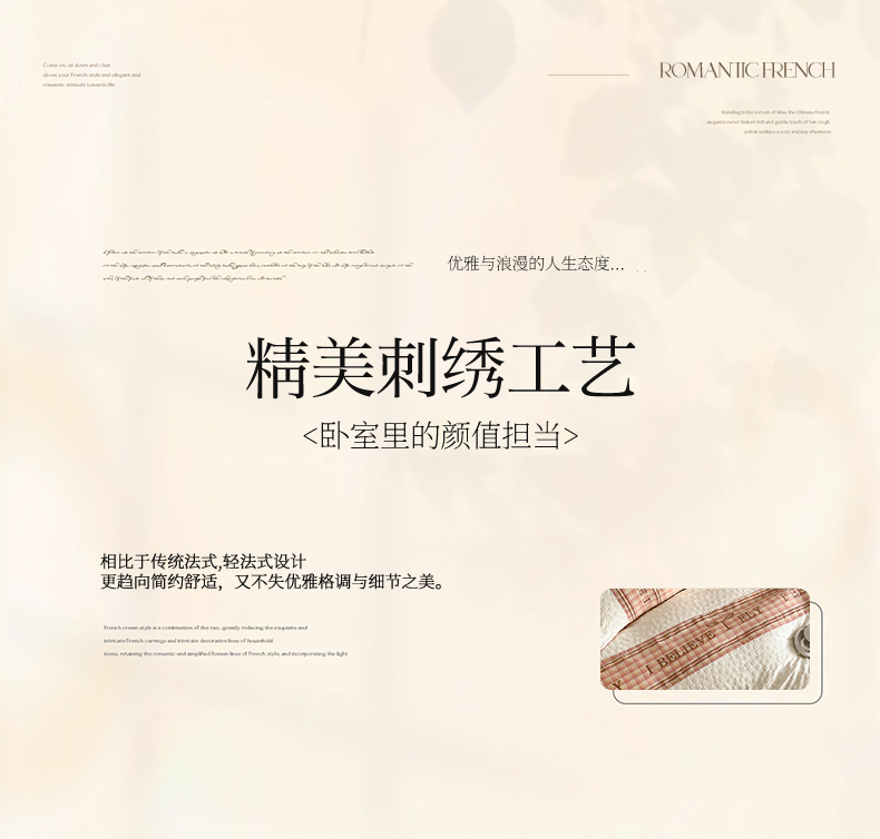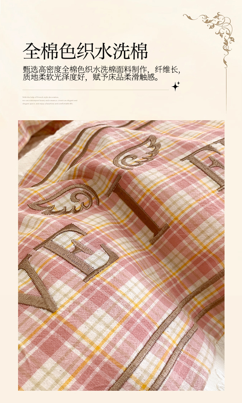 商品名称:换种生活 2024新款全棉活性印染刺绣四件套-法式小香风系列 兰图-粉