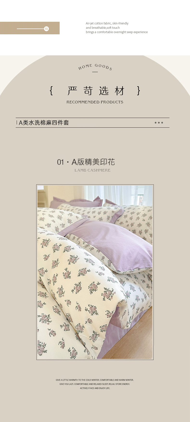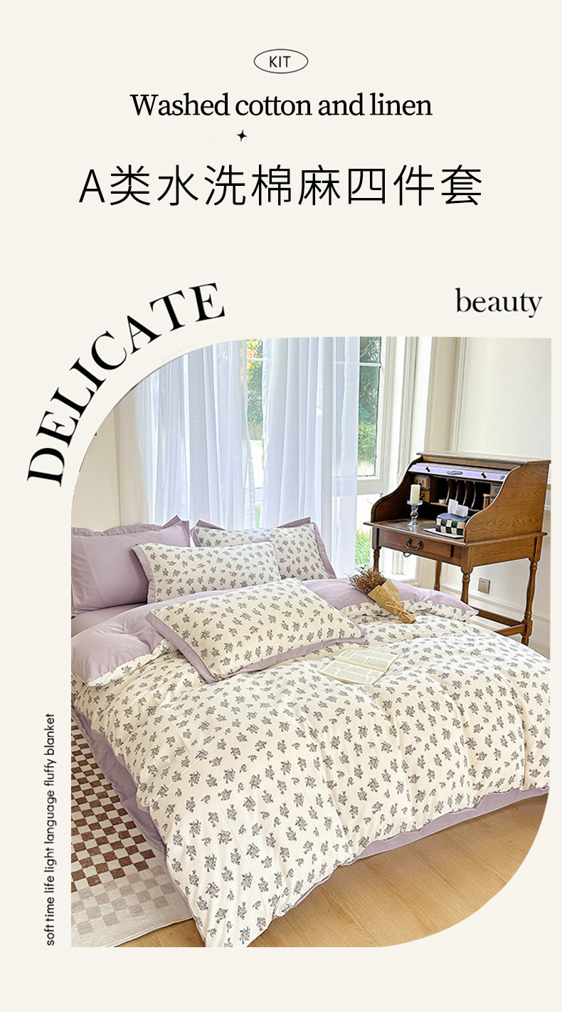 当前位置: 91家纺网 > 商品网购 > 床品套件 > 四件套 > 化纤活性四件套 > 卡普二店 2024新款A类水洗棉麻四件套 遇见春天
