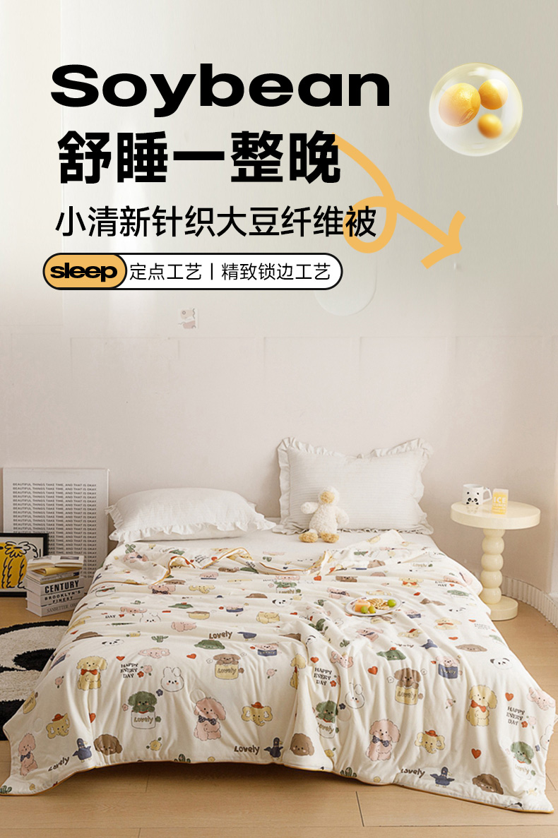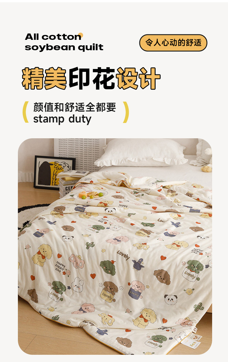 (总)优被业 2025新款A类全棉小清新大豆夏被,KT猫,宁夏,小夜猫,小迷糊,快乐小狗,泡泡糖,草莓园,集美