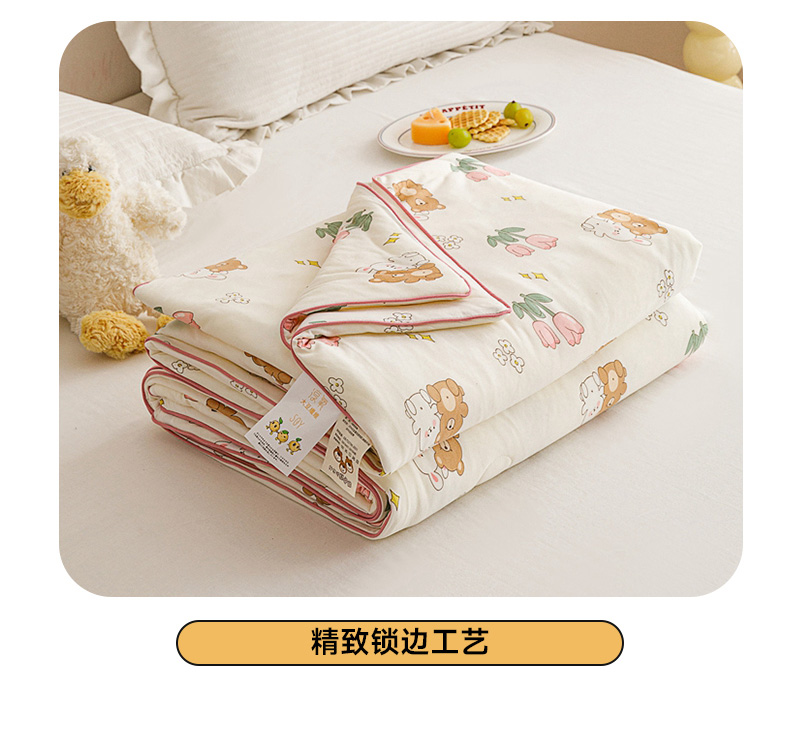 (总)优被业 2025新款全棉双层纱皱皱纱夏被,南瓜熊猫,宠物乐园,小爱心,爱心熊,花语,花馨,蘑菇小兔