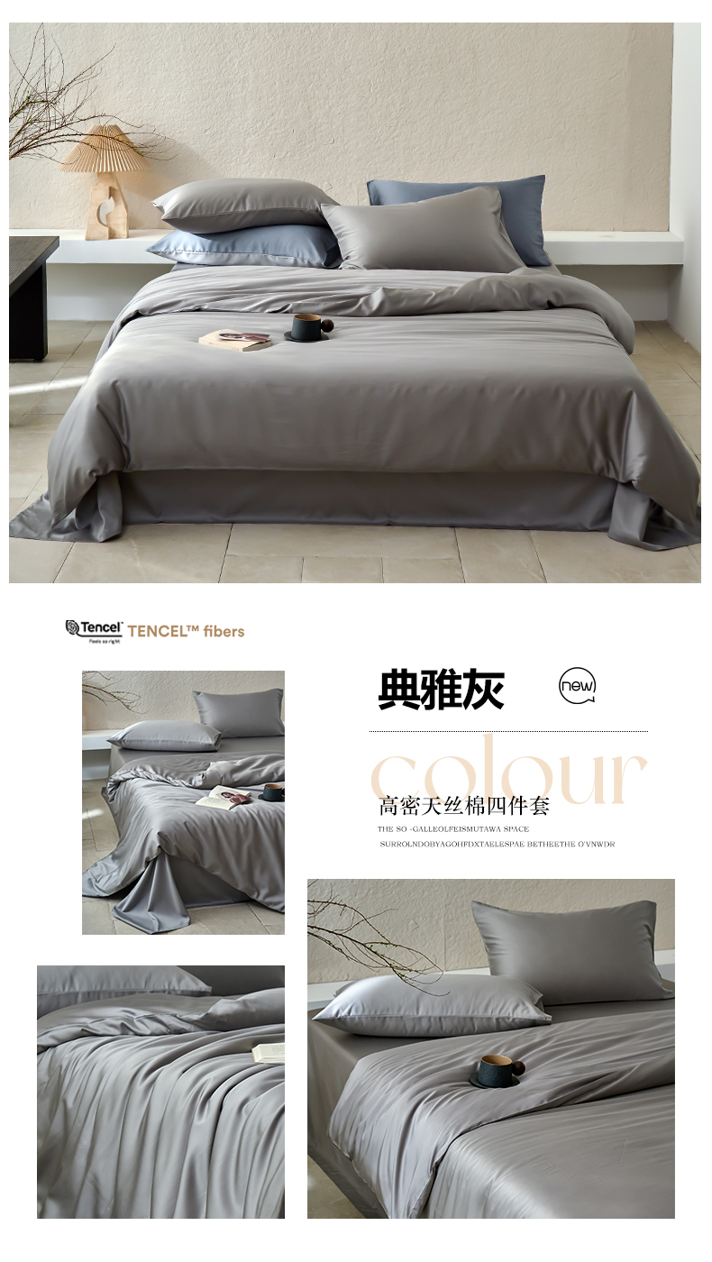 (总)沐晴家纺 2024新款60兰精天丝棉纯色简约轻奢四件套