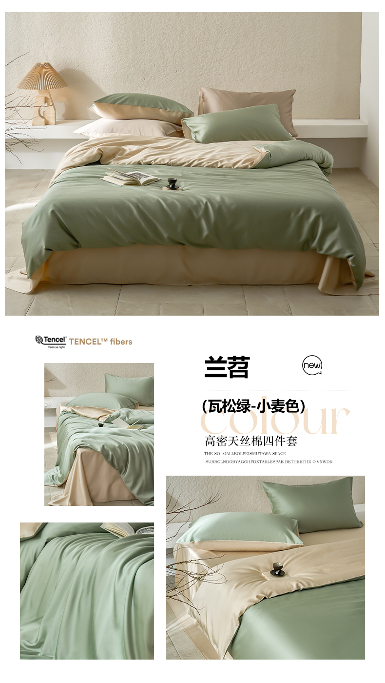 (总)沐晴家纺 2025新款60兰精天丝简约轻奢纯色四件套,敦煌色-曙光银,灰蓝色-冰川灰,极地白,满天星紫-曙光银,嫩芽绿,欧芹绿,浅艾绿-香槟金,沙茶色,天空蓝-浅艾绿,天青色-香槟金,香奈绿-嫩叶绿,岩石灰,野樱莓-芋泥灰,月光色-岩石灰,芝士黄-沙茶色,芝芝淘淘-极地白