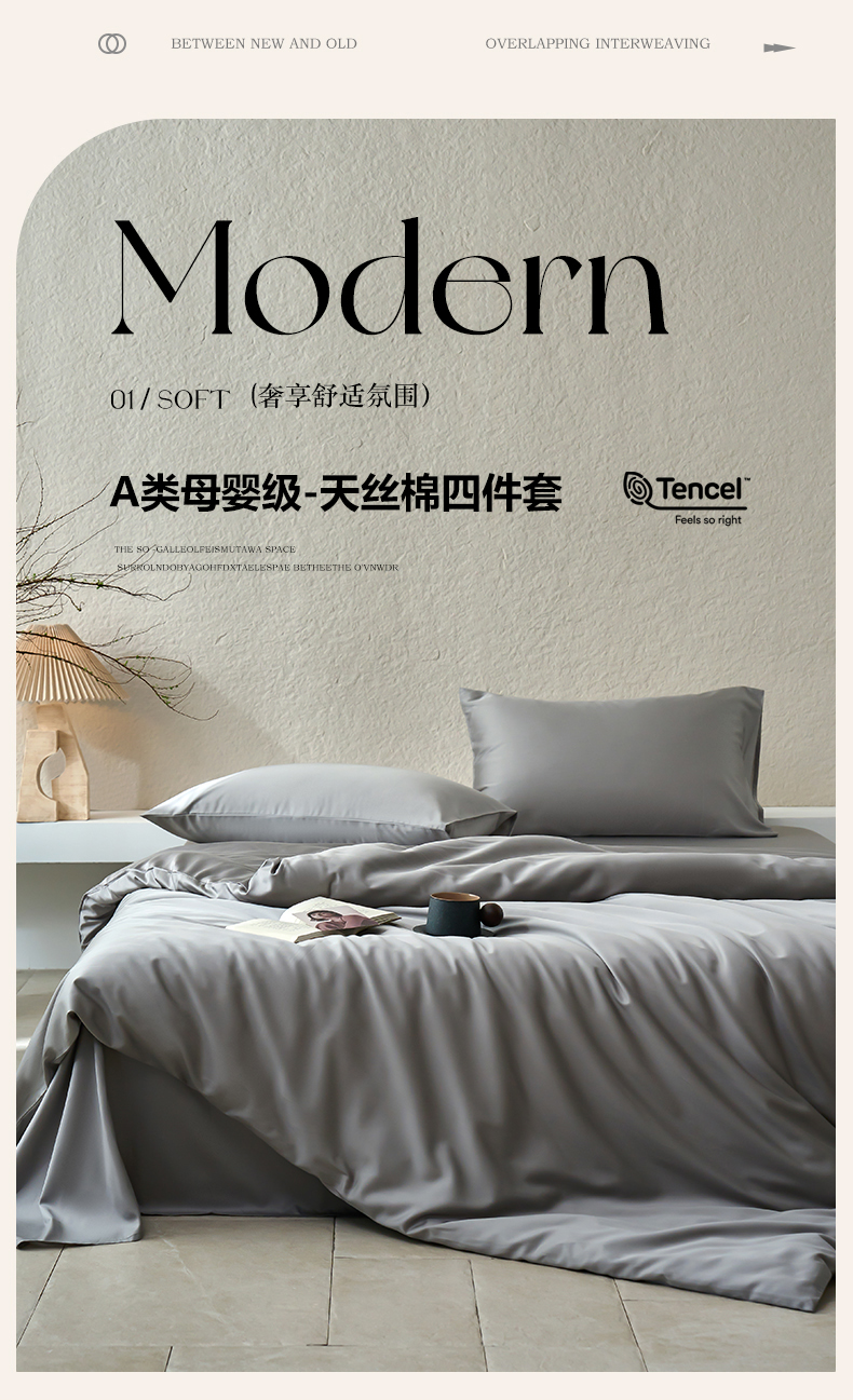 商品名称:(总)沐晴家纺 2024新款60兰精天丝棉纯色简约轻奢四件套