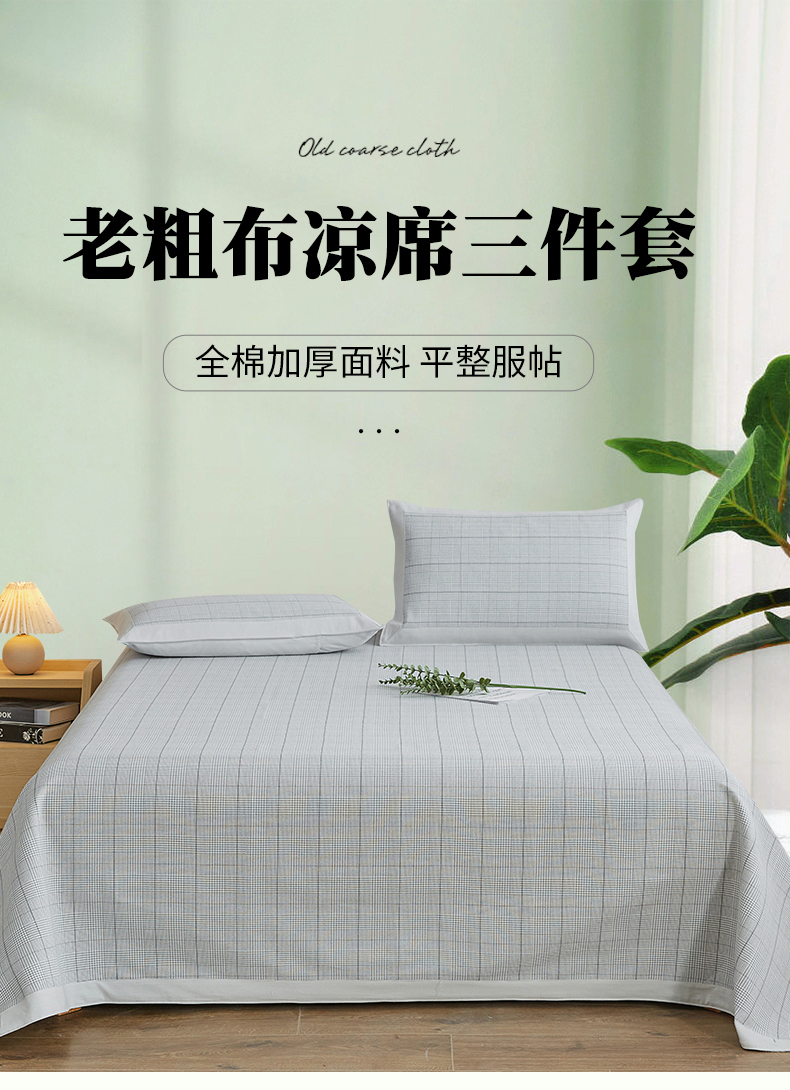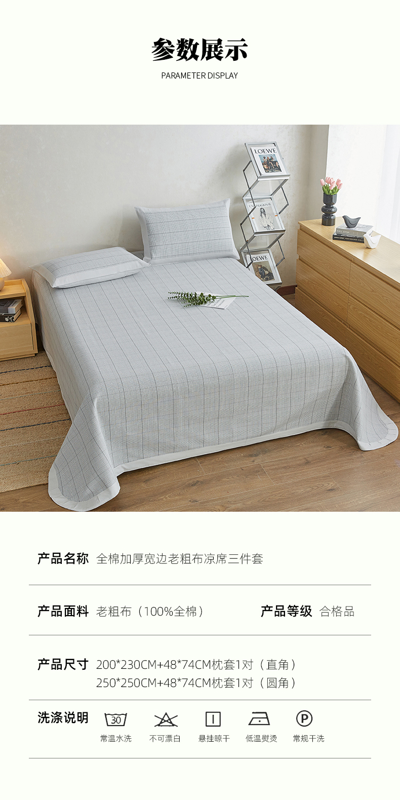 商品名称:首爱 2025新款全棉加厚宽边老粗布凉席三件套 楼兰