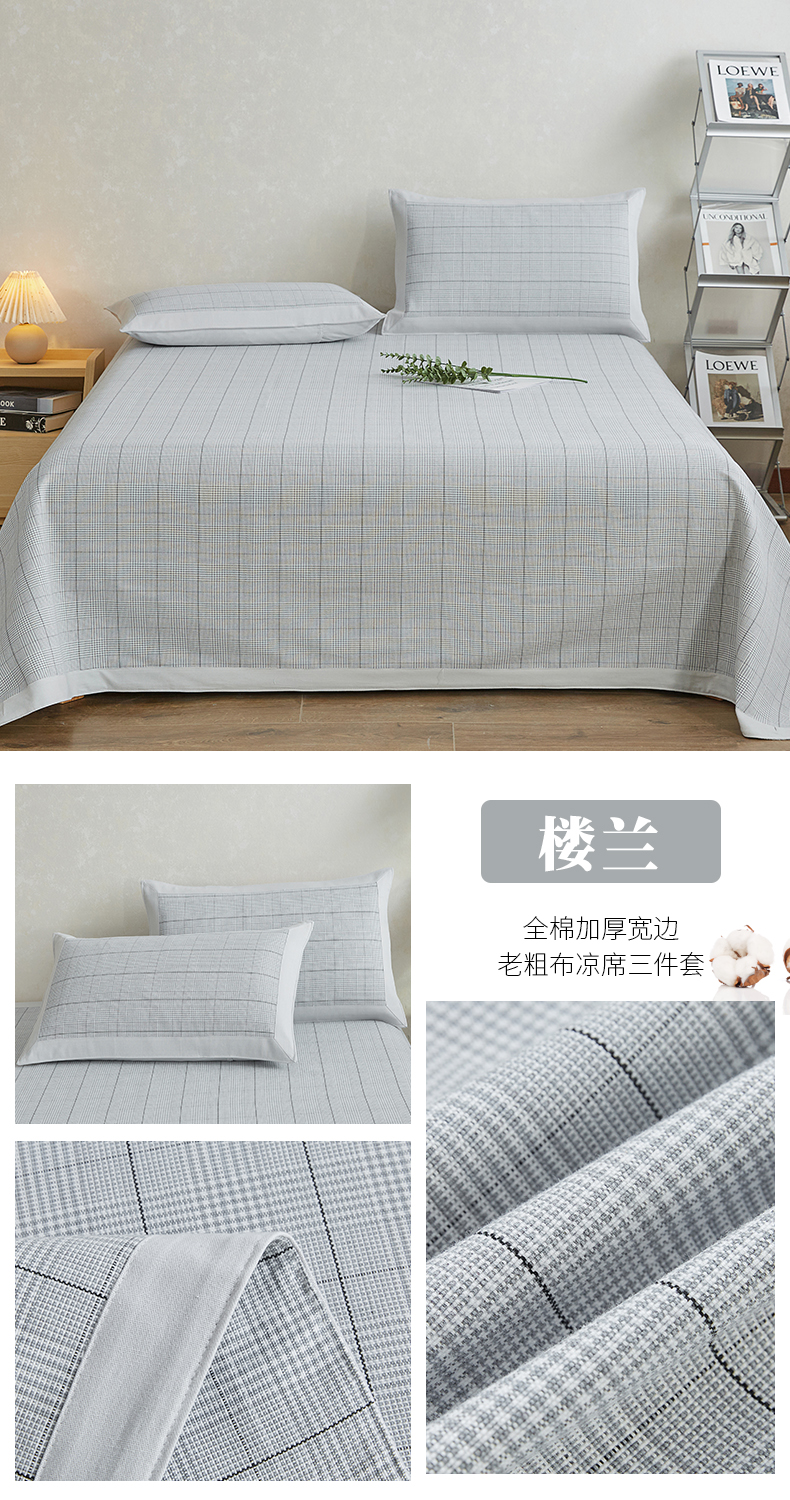 首爱 2025新款全棉加厚宽边老粗布凉席三件套 楼兰