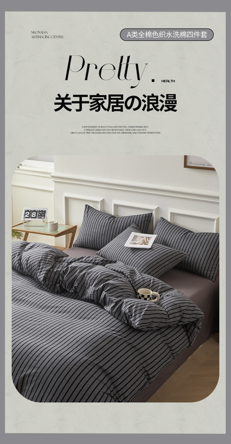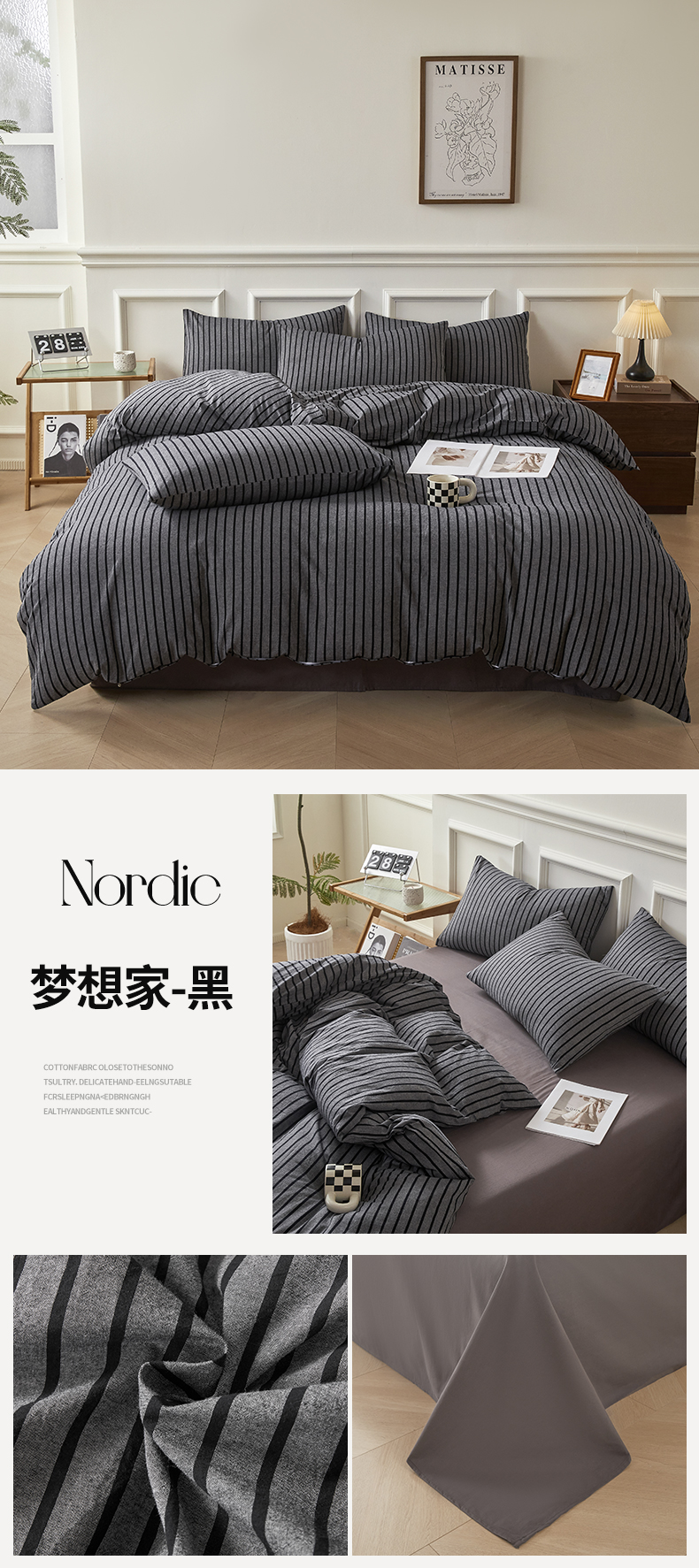 当前位置: 91家纺网 > 商品网购 > 床品套件 > 四件套 > 全棉普通四件套 > 莱登卡奴 2024新款全棉色织水洗棉四件套 梦想家-黑
