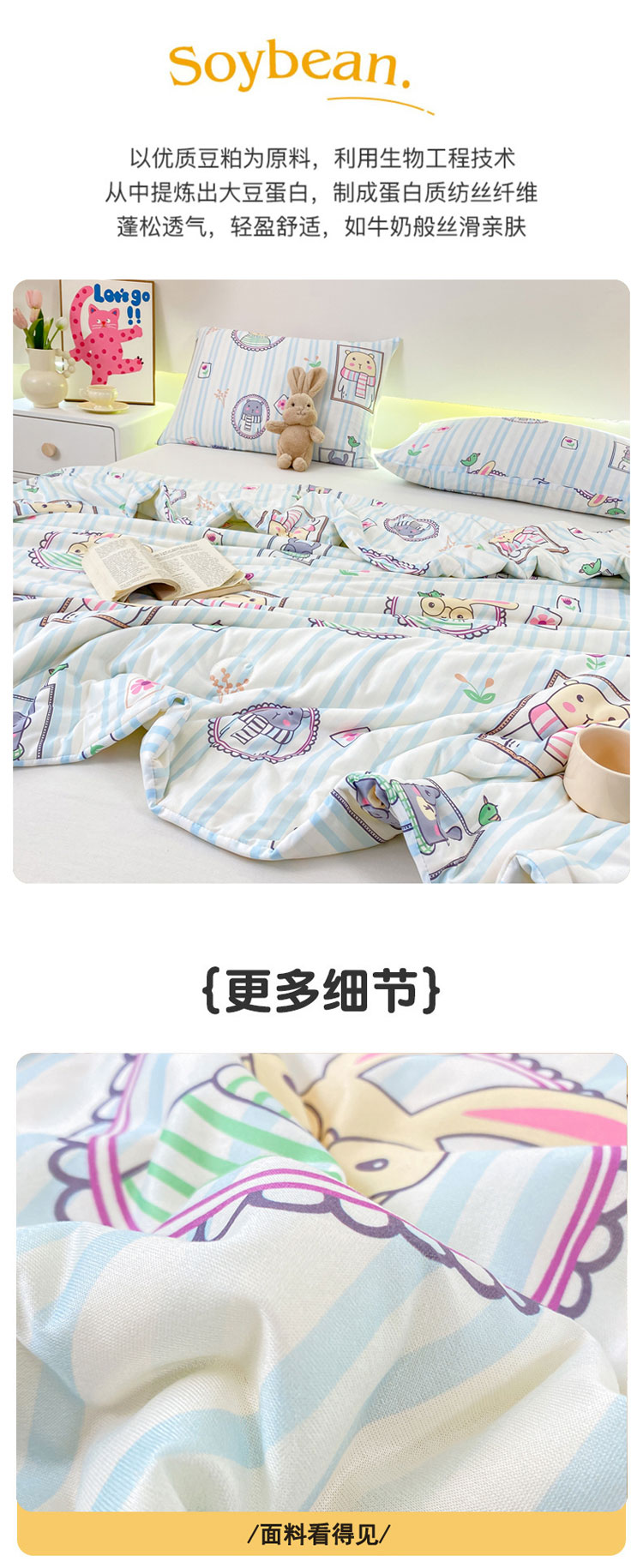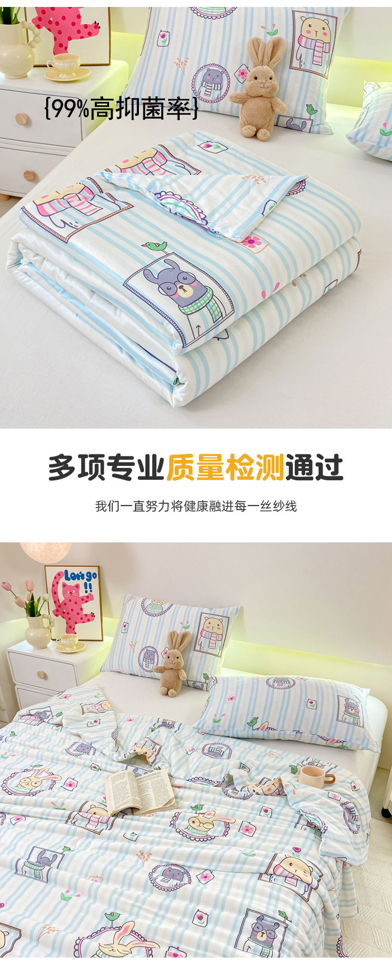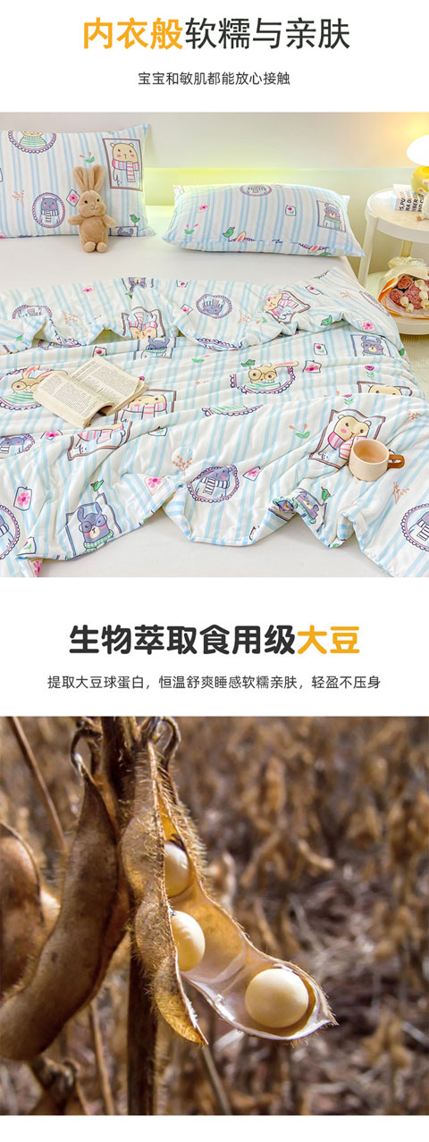 商品名称:柏薇 2024新款针织棉夏被 竖条熊兔-蓝
