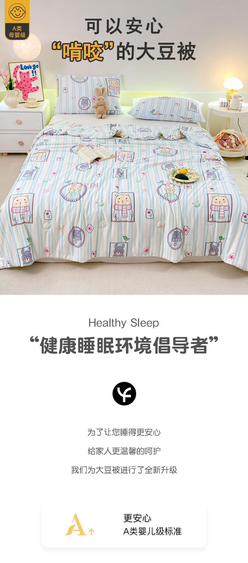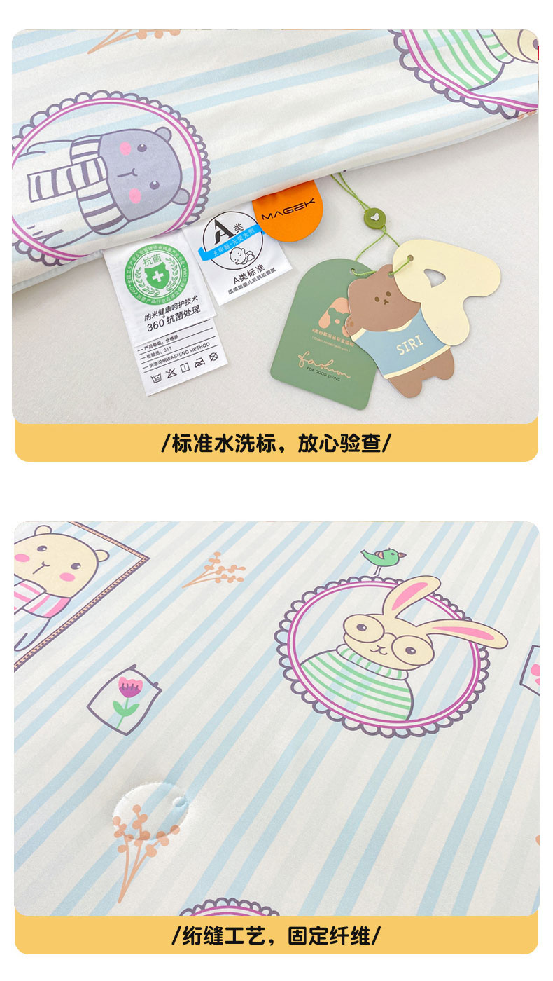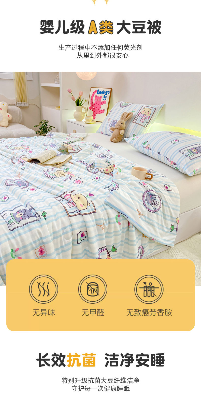 商品名称:柏薇 2024新款针织棉夏被 竖条熊兔-蓝