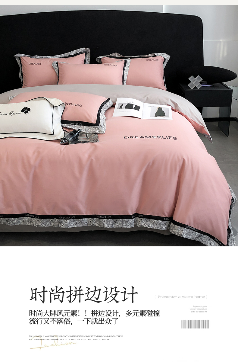(总)眷恋家纺 2025新款A类全棉贡缎磨毛双拼色四件套,粉恋,桦茶,蓝黛,林昔,莫百草,木森,奶咖,奶昔,暖阳,森屿,松风,钛苏,维粉,溪紫,耀金,鱼肚,鱼月,玉林,紫黛,紫调,包装