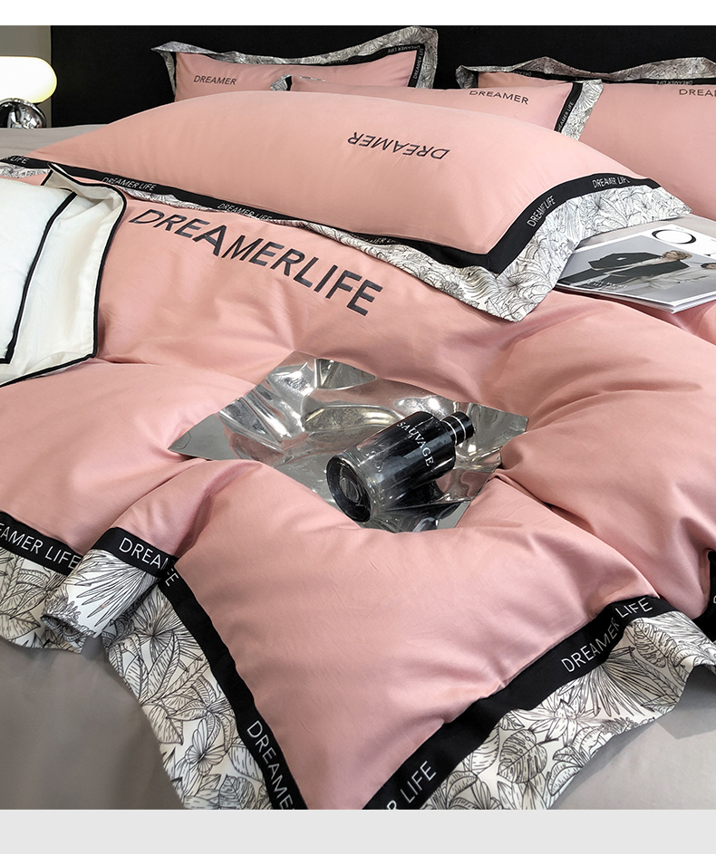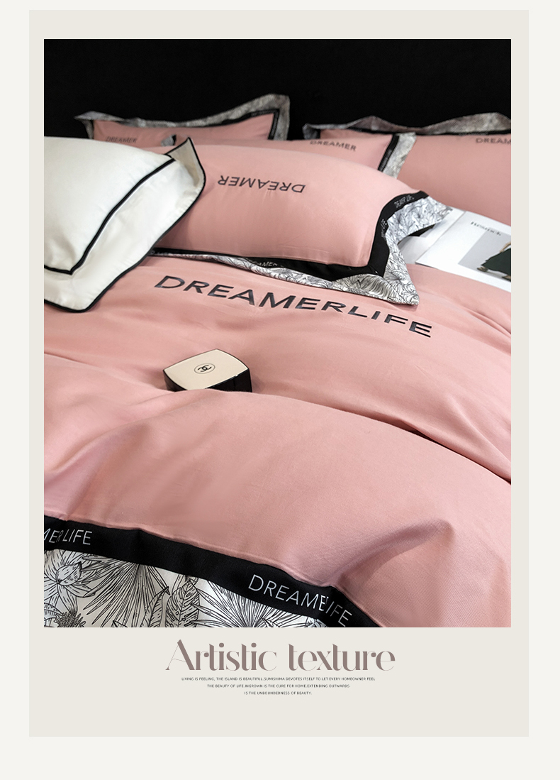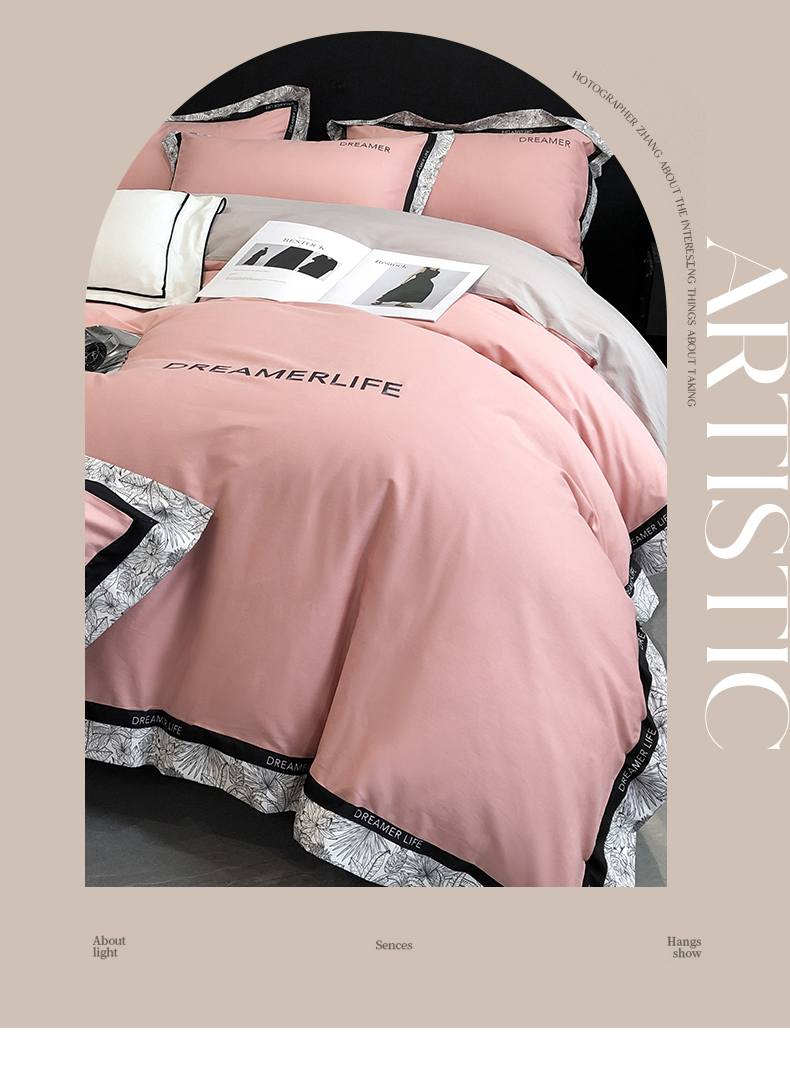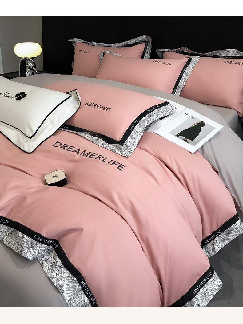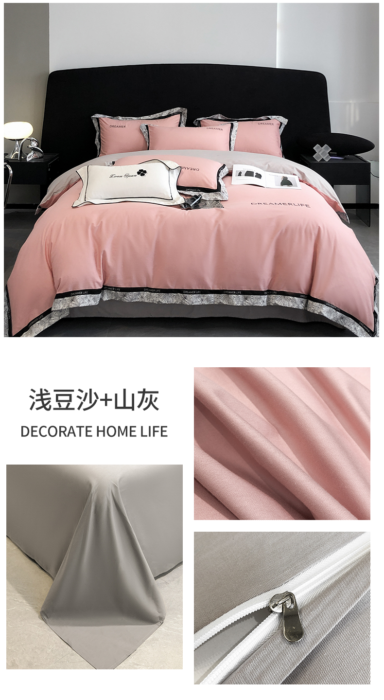 眷恋家纺 2024新款全棉数码拼接刺绣四件套 浅豆沙+山灰