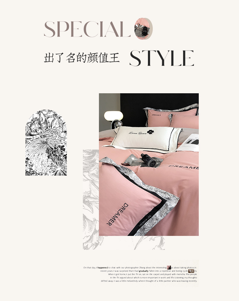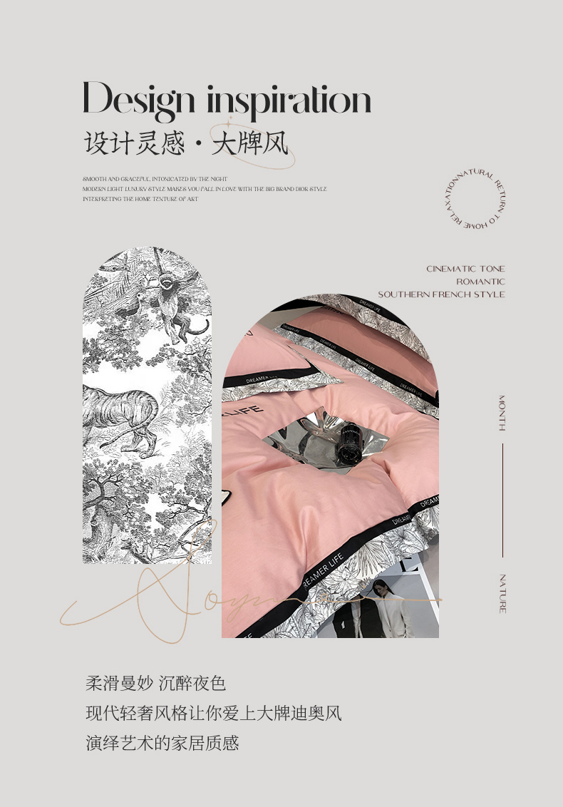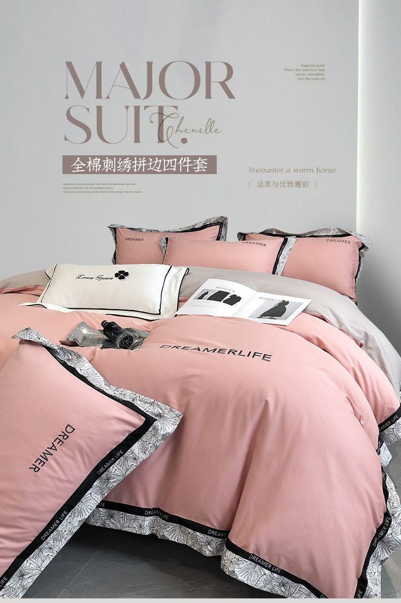 商品名称:眷恋家纺 2024新款全棉数码拼接刺绣四件套 浅豆沙+山灰