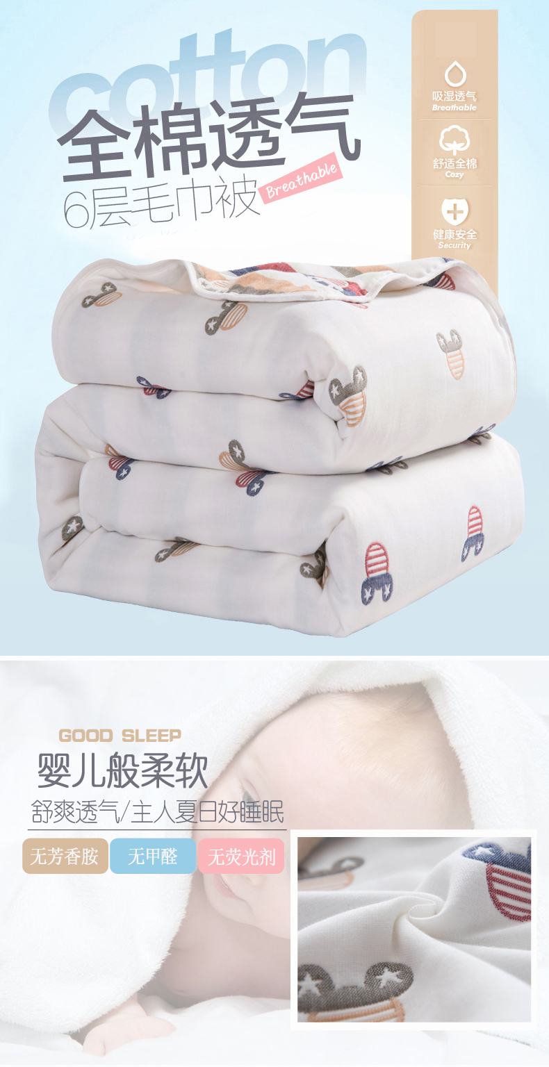 朴尔2024经典六层纱布全棉毛巾被系列-朴尔经典款常年备货 快乐米奇