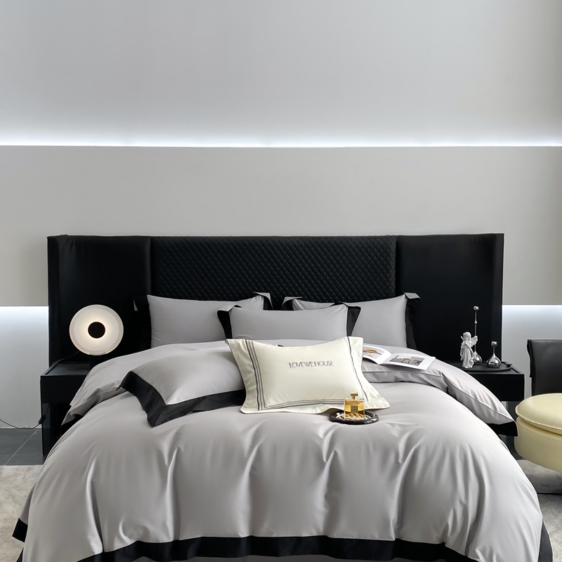 (总)若未家居 2025新款50S长绒棉纯色撞色简约拼角款套件-洛斐