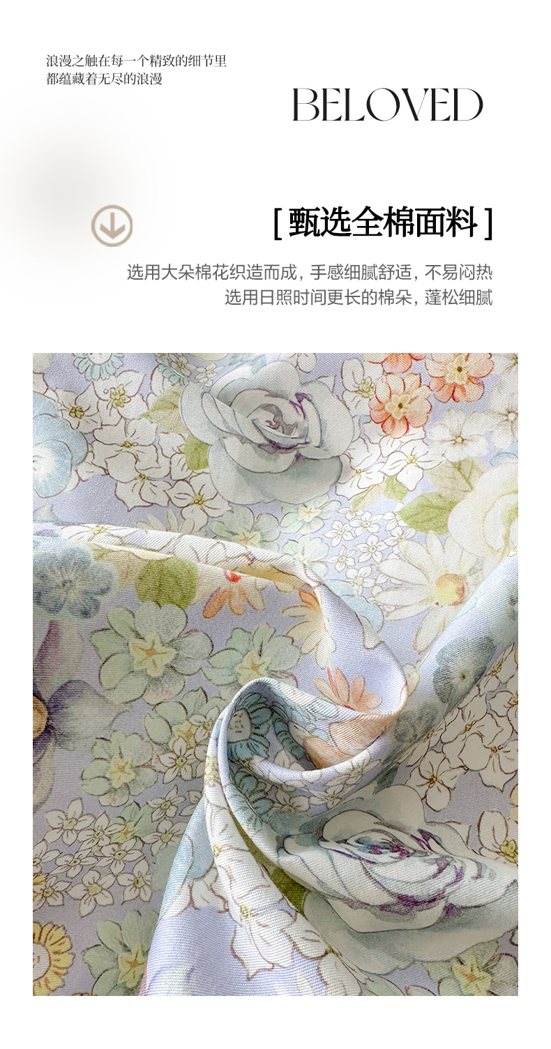 当前位置: 91家纺网 > 商品网购 > 床品套件 > 四件套 > 全棉普通四件套 > 眷恋家纺 2024春夏新款全棉13376数码印花铂金棉纯棉四件套 富贵满园-兰