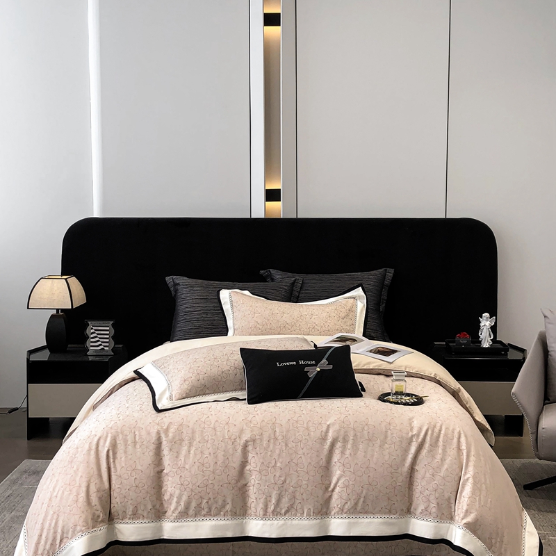 (总)若未家居2023新款轻奢意式50支全棉长绒棉四件套-水墨,贵族白,雾棕,烟蓝
