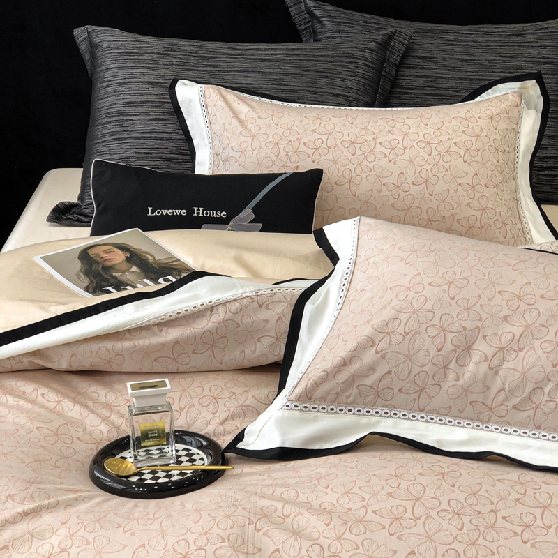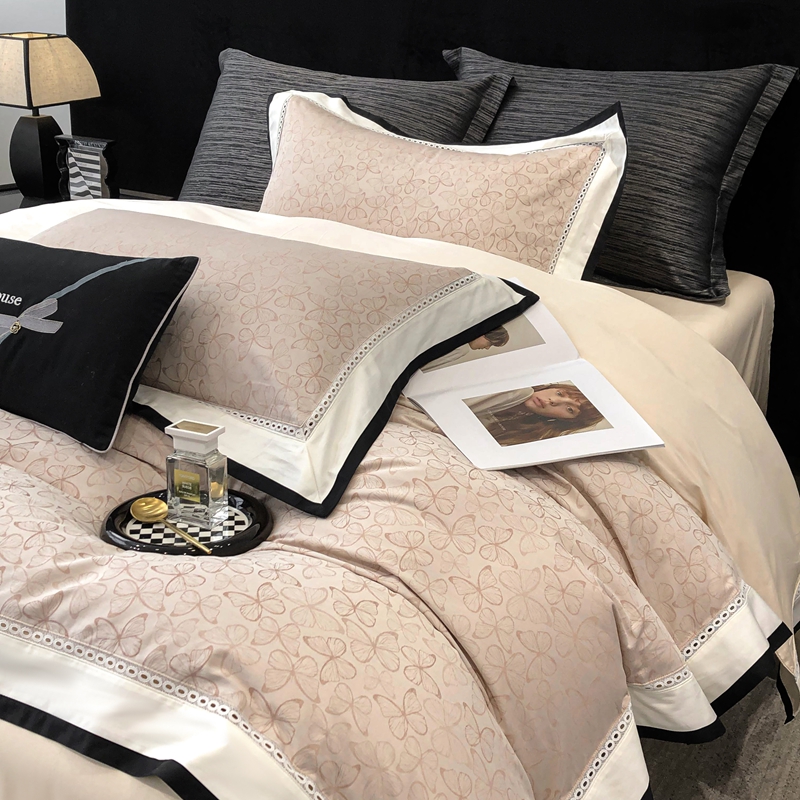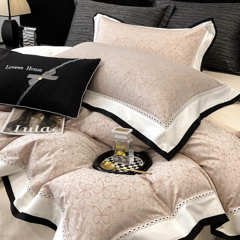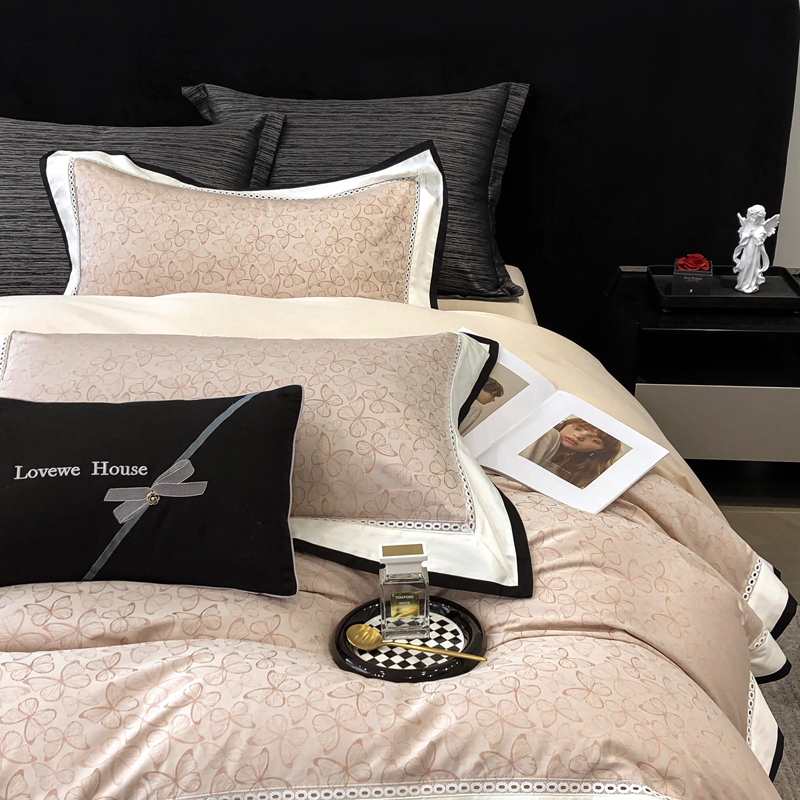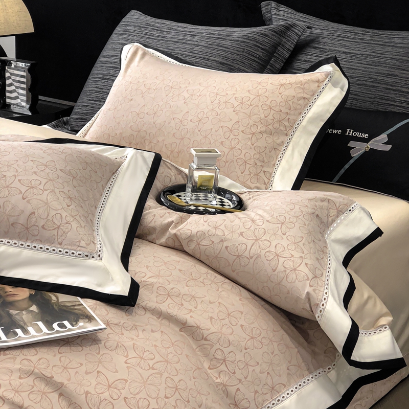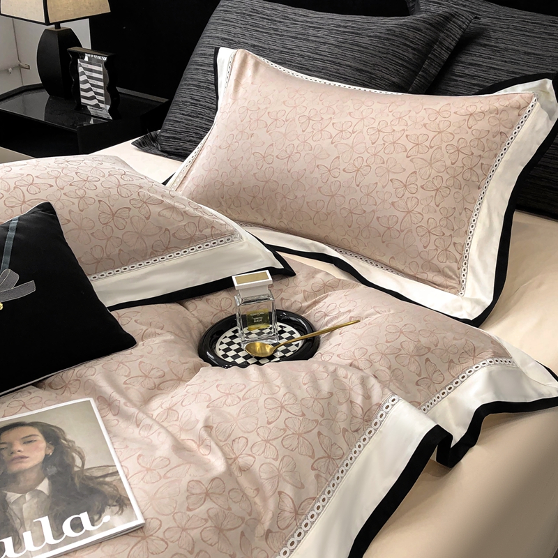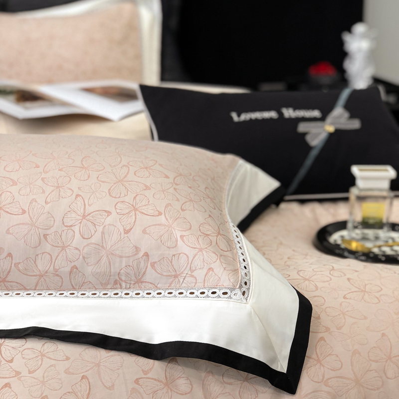 2025新款50S全棉色织提花镂空轻奢款套件-爱缇菲 蝶 粉