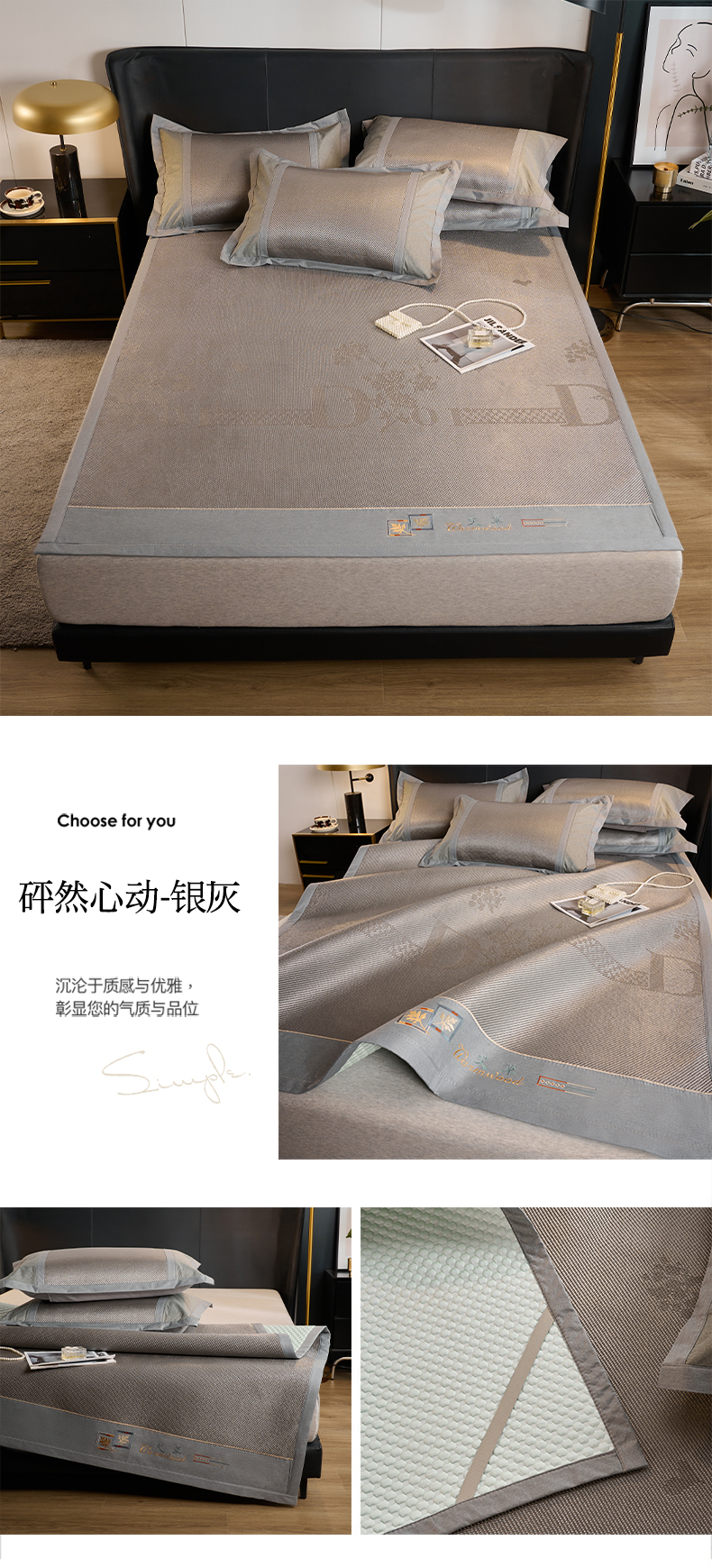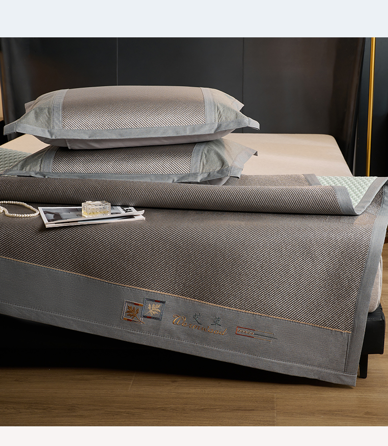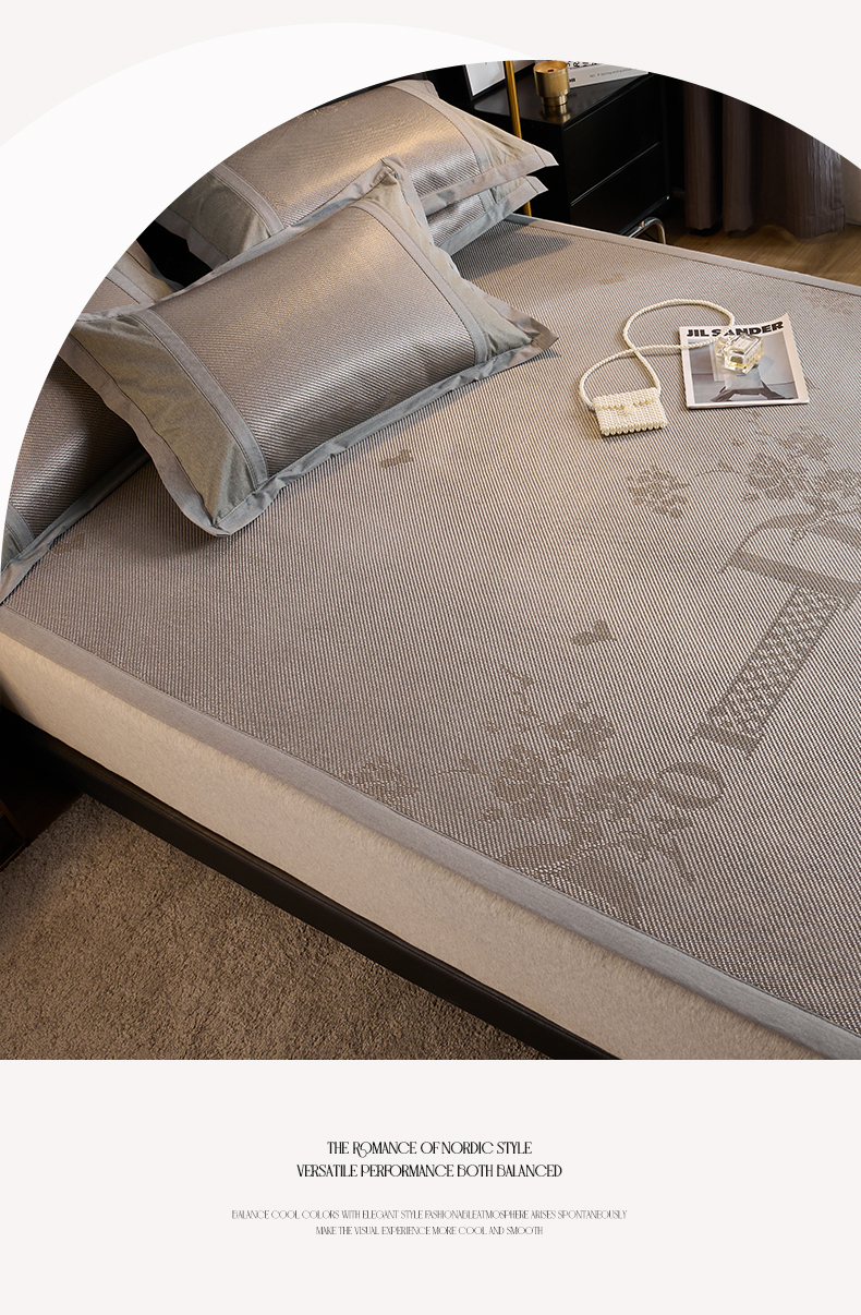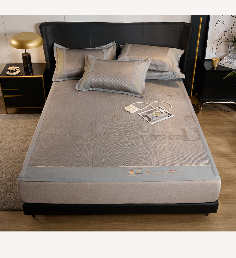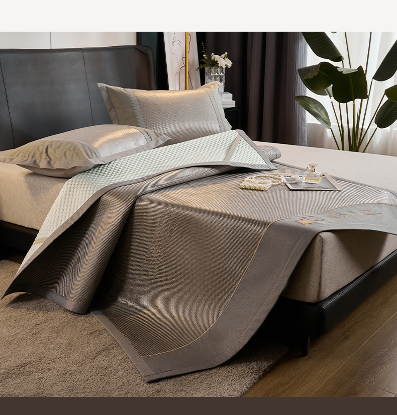 鑫琪莱家纺 2024新款冰藤凉豆豆凉席三件套 怦然心动-银灰