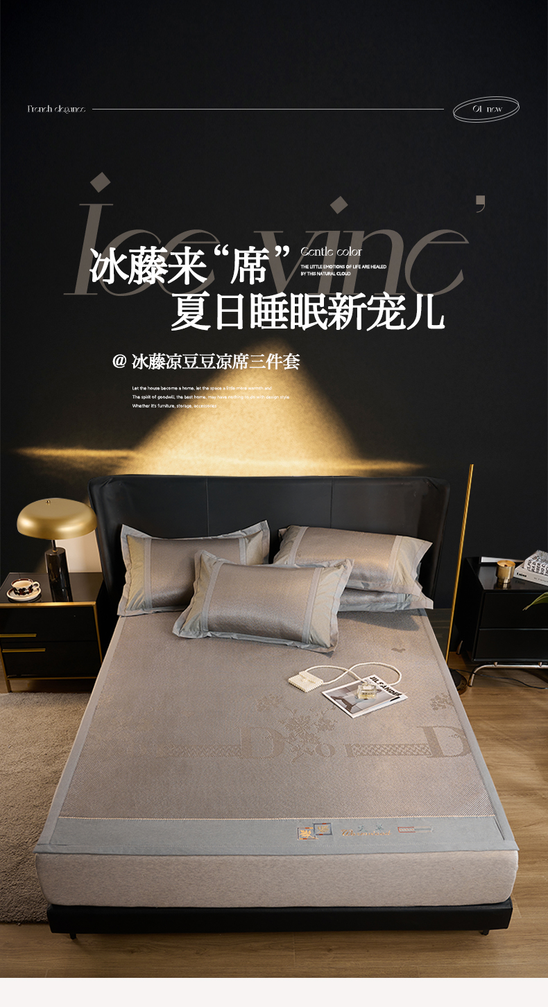 商品名称:鑫琪莱家纺 2024新款冰藤凉豆豆凉席三件套 怦然心动-银灰